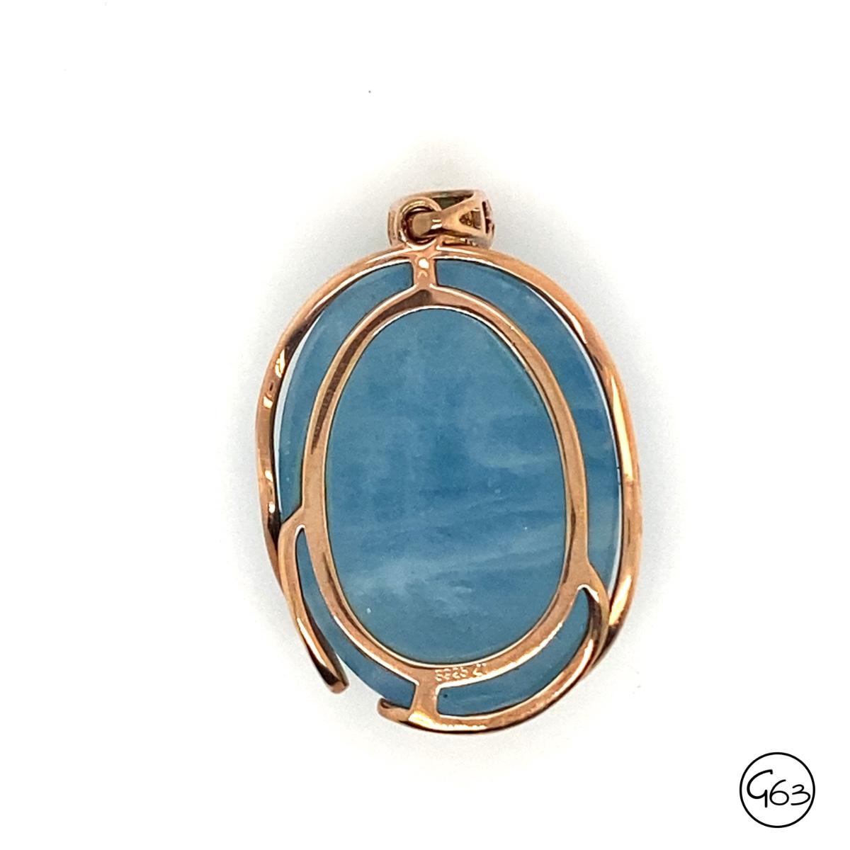 Rose gold tone. Testing as aqua. Stamped S925 ZT. Measures approx. 1.25"(including bale). Weighs approx. 7.6grams.