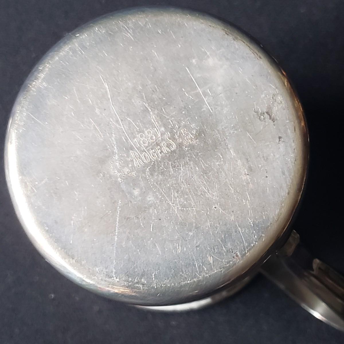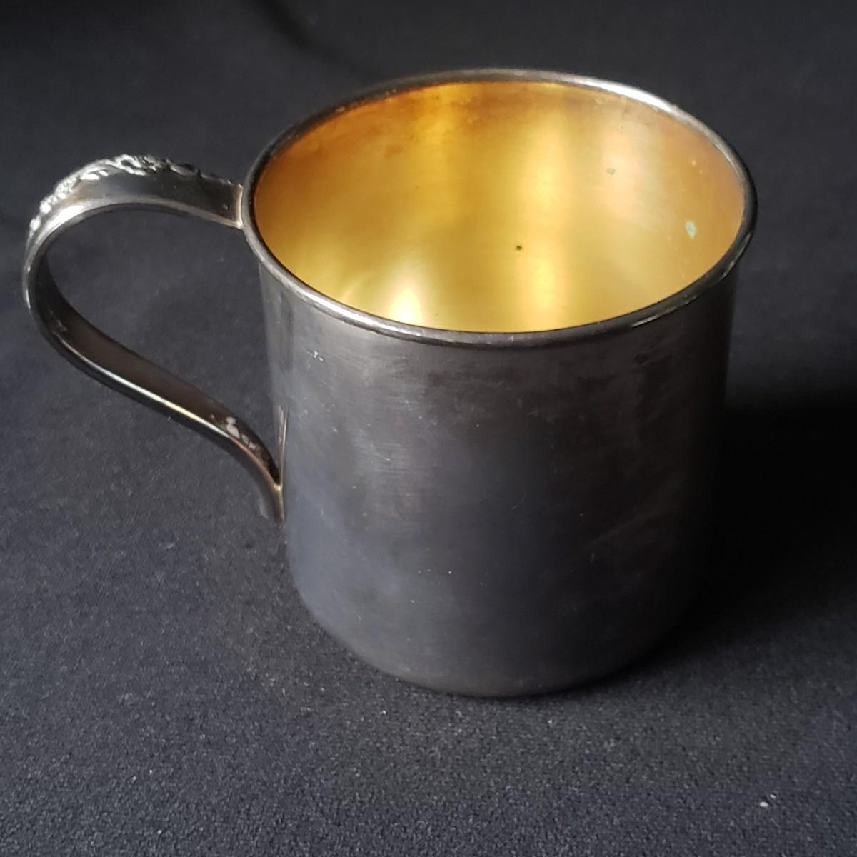 This baby silver lot is just adorable! There are two cups, one stamped "Rogers 1881" and a cup made by Web marked sterling. The cups measure approximately 3" x 2"H. The three silverwares are perfect for a toddler. The small spoon with floral engravings is marked Lullaby Sterling. Starting bid is at or near melt value of sterling items.