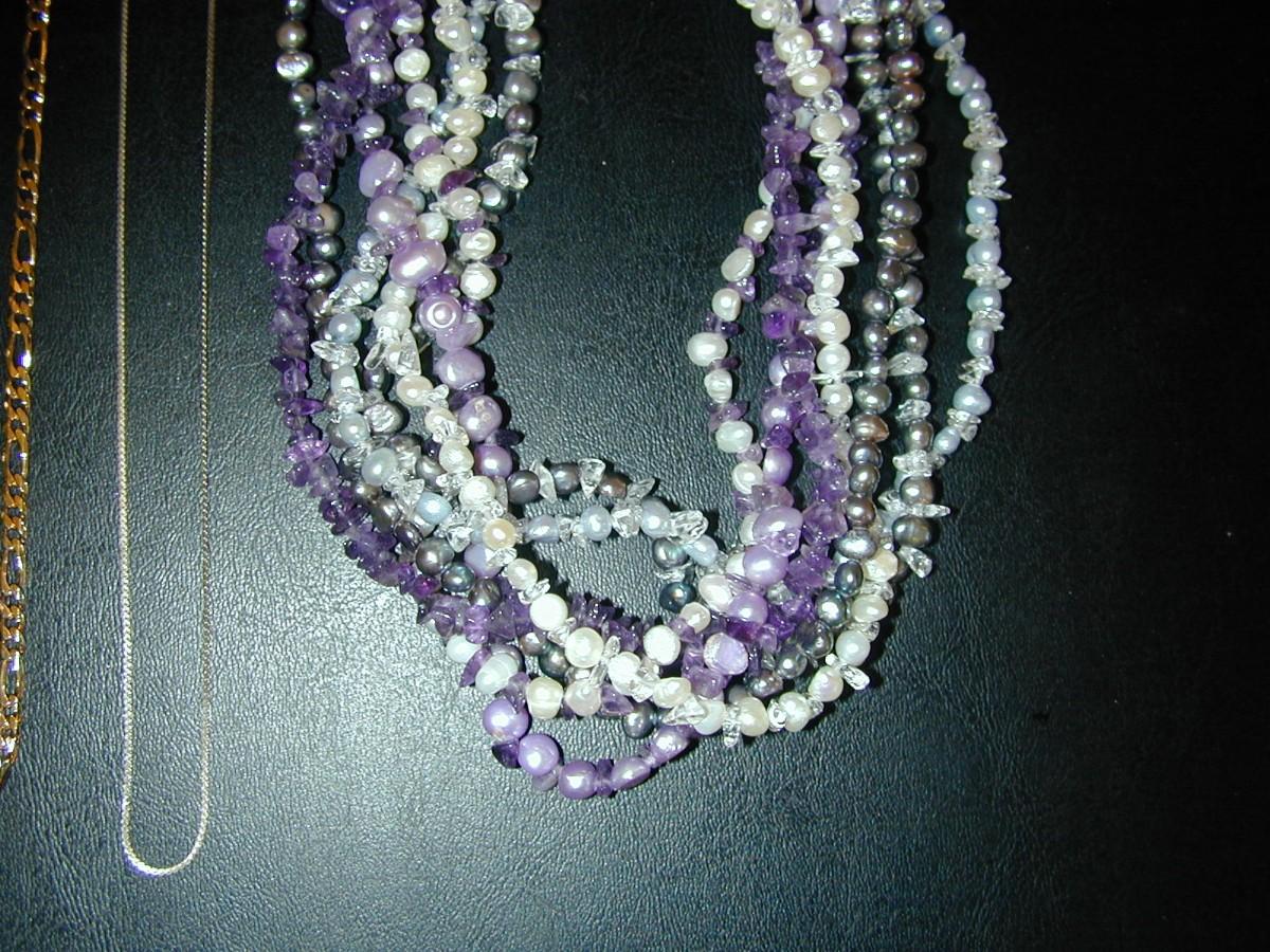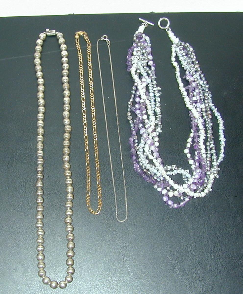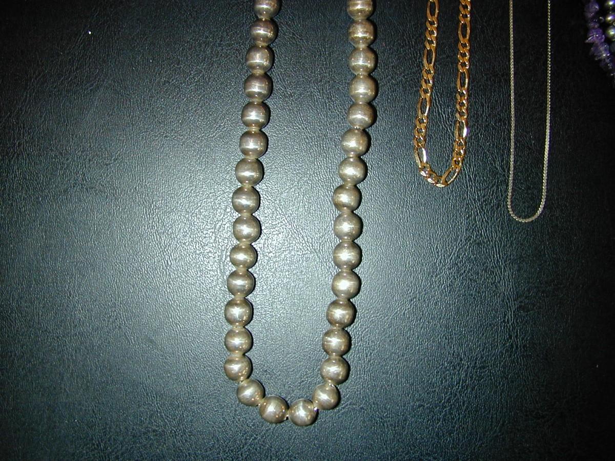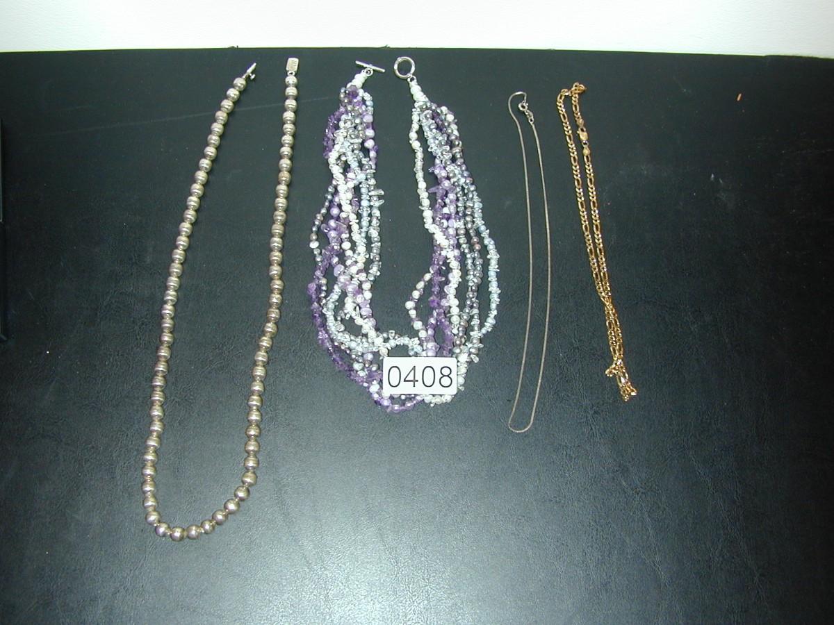 Sterling Ball Bead Necklace Mexico & Freshwater Pearl Amethyst Bead Necklace (85g) ++ Lot 408