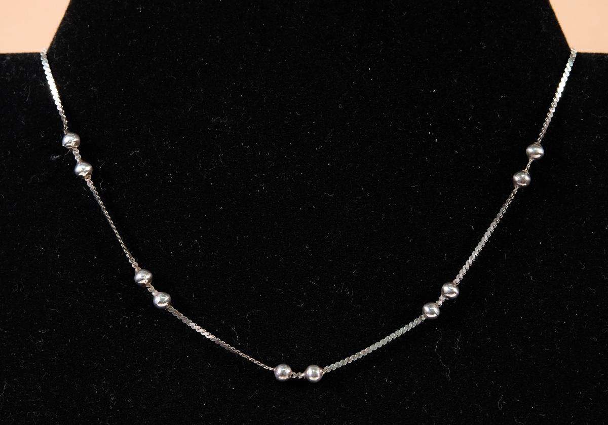 Sterling ball chain necklace. Stamped 925. Measures approx. 14.5". Weighs approx. 5grams.