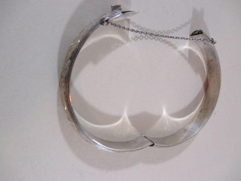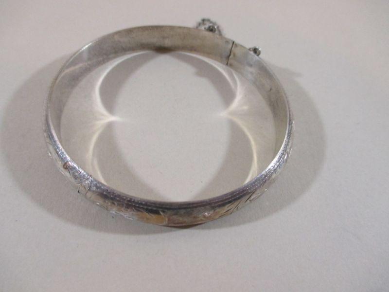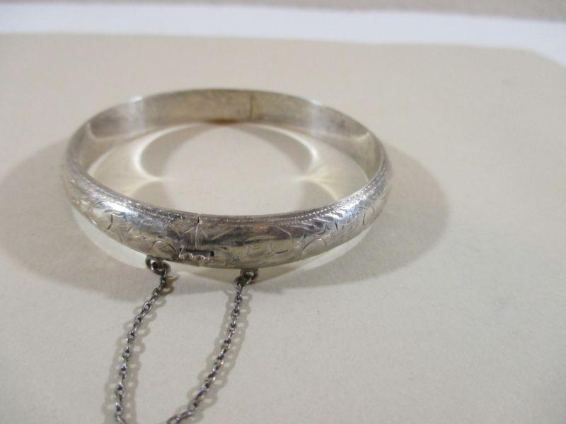 Sterling Bangle bracelet Signed Good condition Adjustable chain