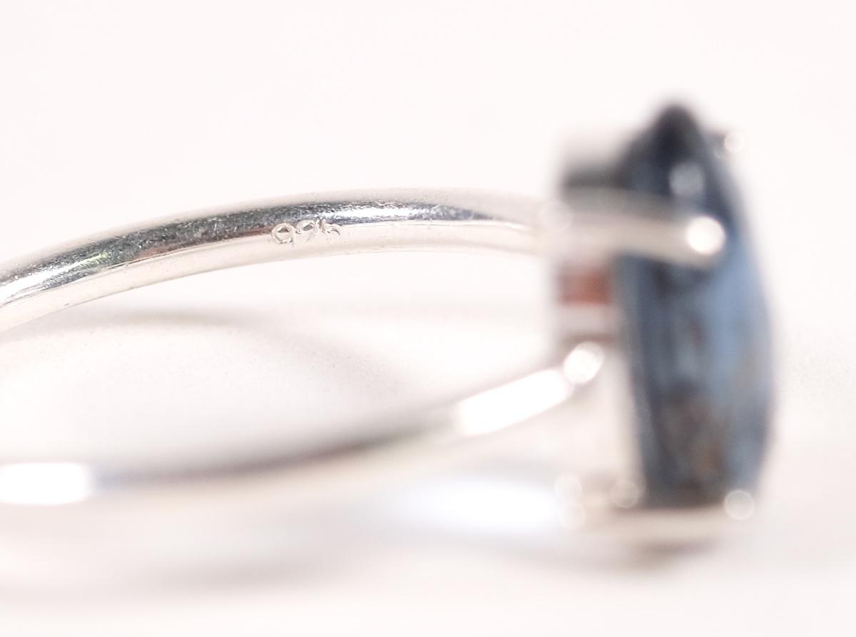 Sterling Blue Gemstone with pepper mineral inclusions Ring. Size 7.25. Stone measures approx. 3/8". Stamped 925. Weighs approx.