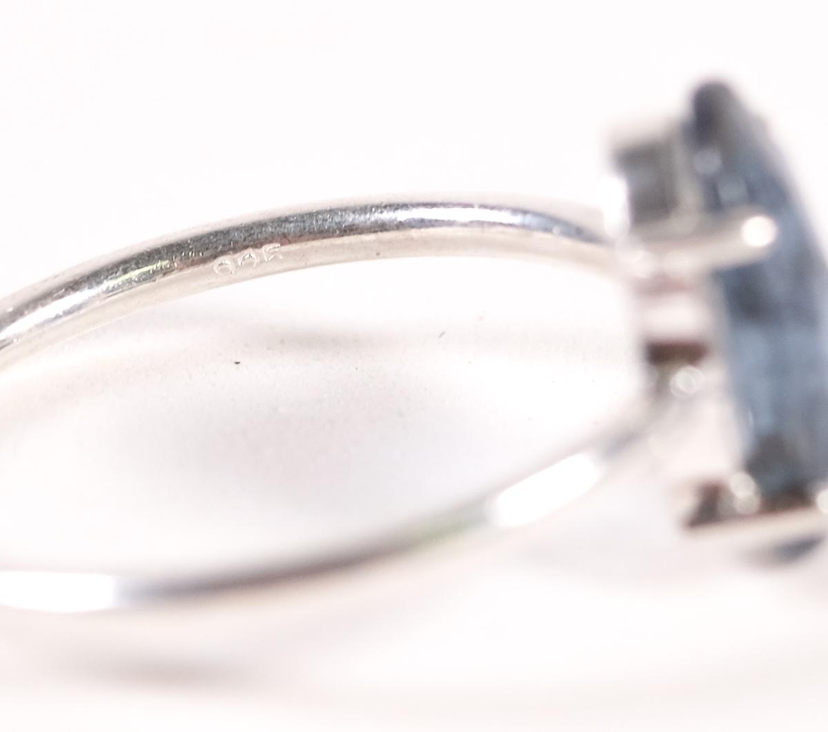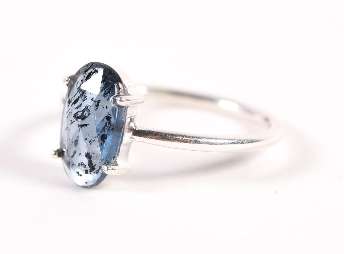 Sterling Blue Gemstone Ring. Size 8. Stone measures approx. 7/16". Stamped 925. Weighs approx. 2.1 grams.
