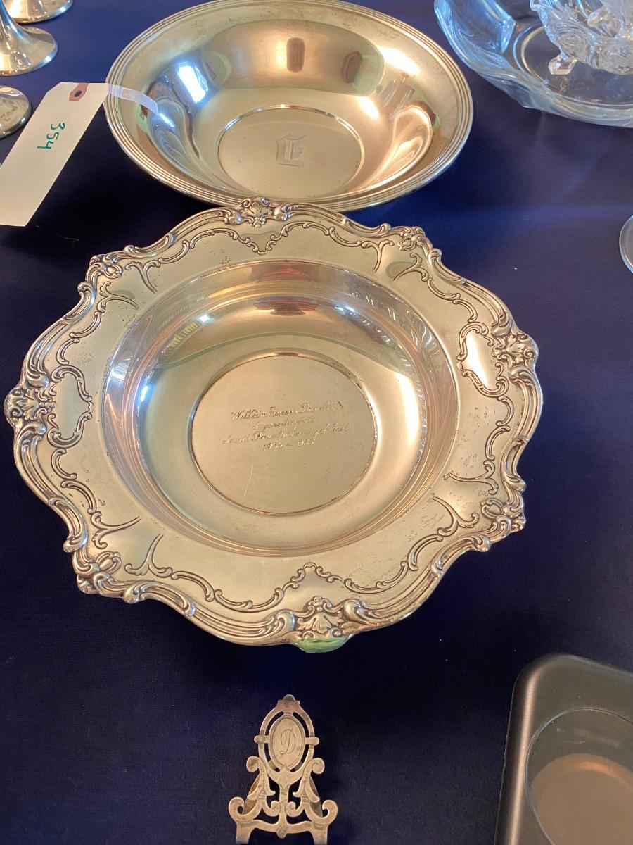 LOT 354 Sterling Bowl and Napkin Clip Lot, Both Bowls and clip Monogramed, Sunday School Recognition Bowl Gorham