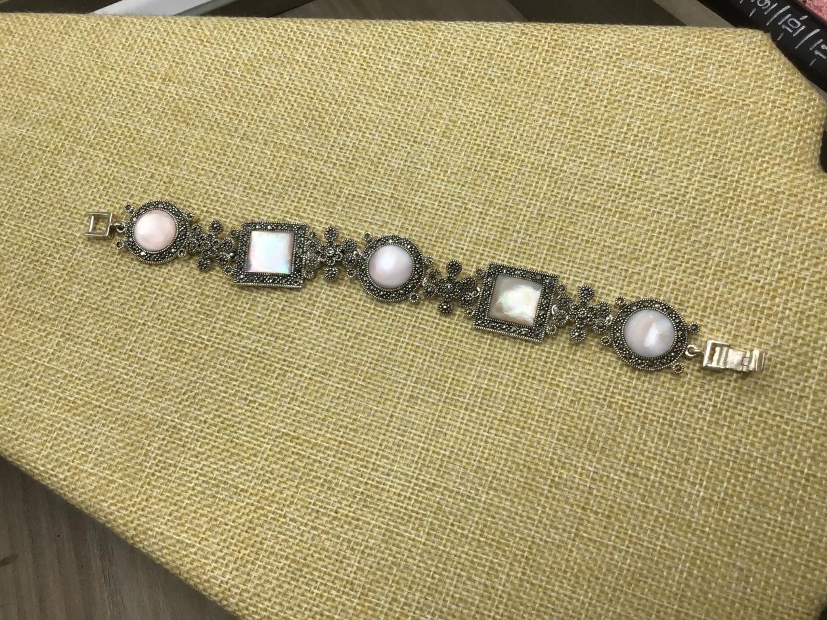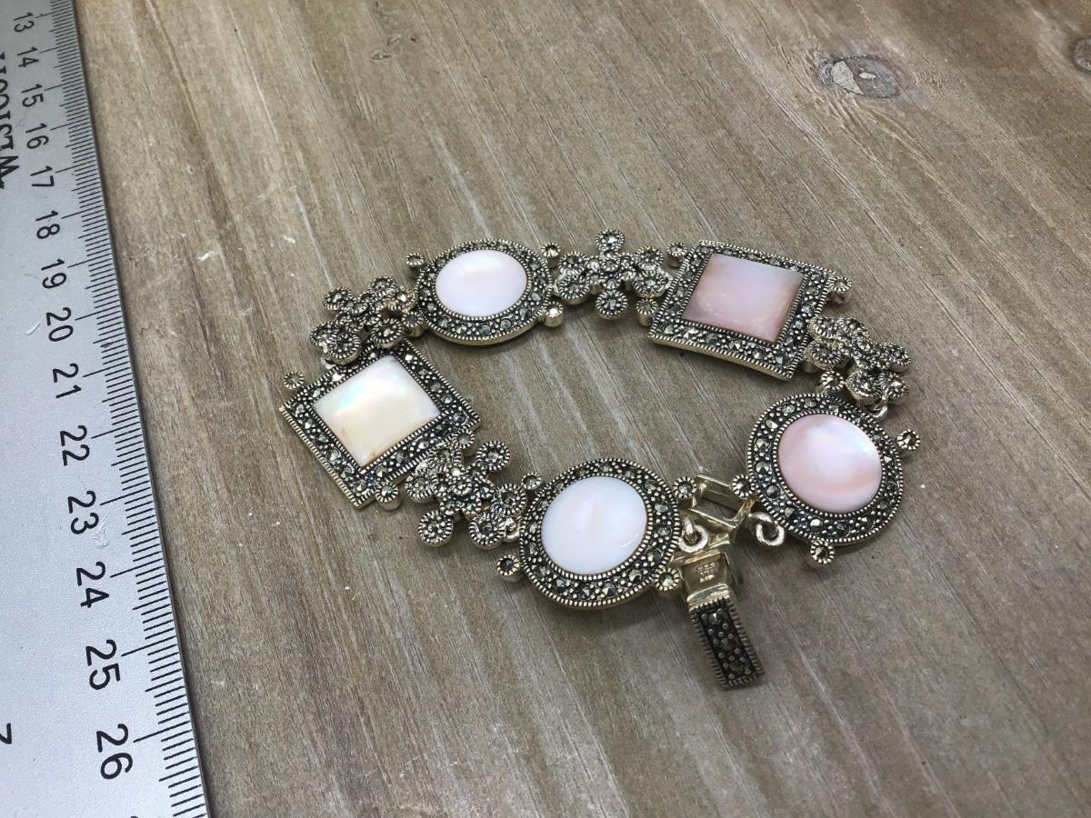 STERLING BRACELET W, MOP Beautiful STONES Marked