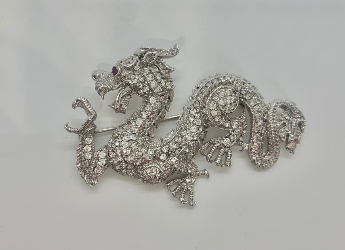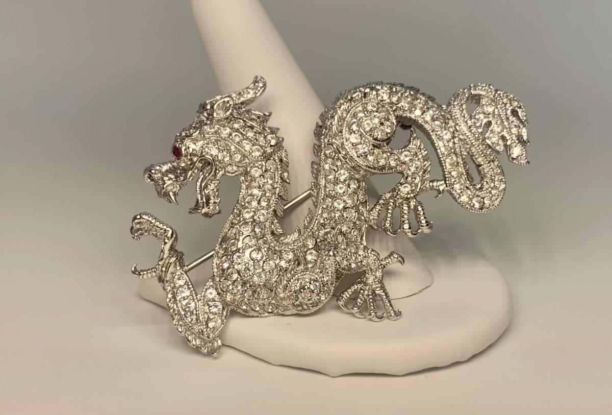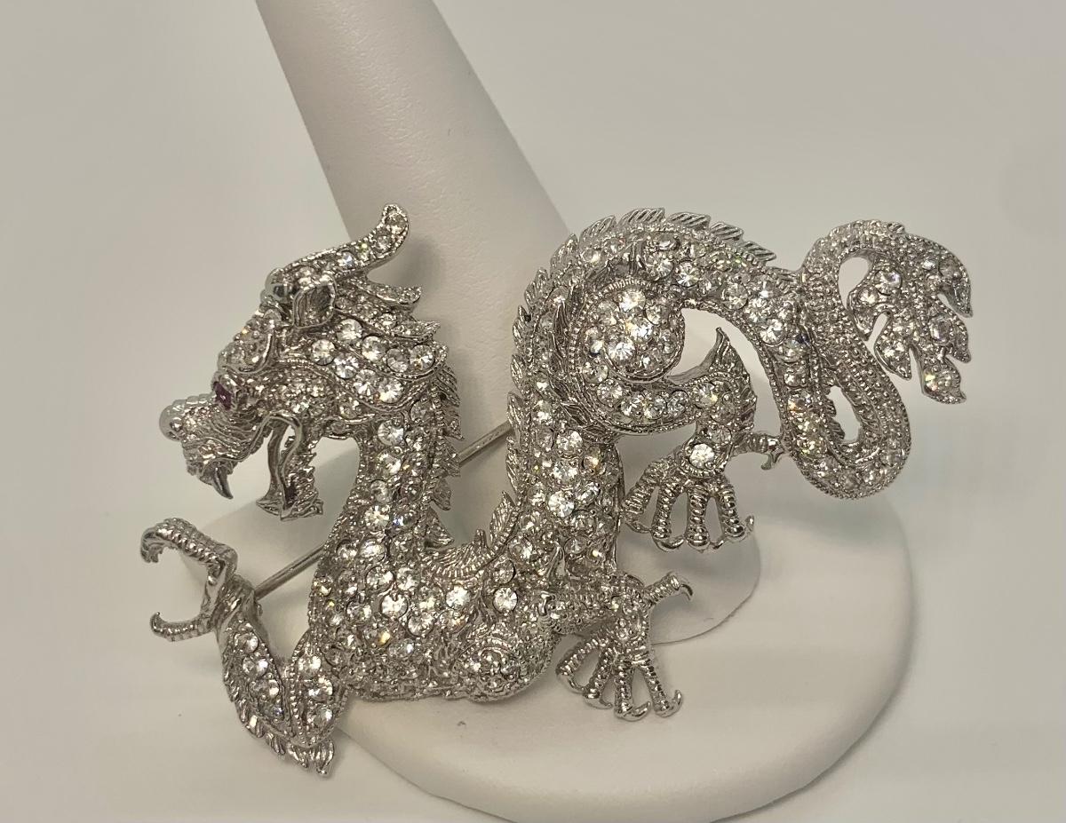 Sterling Brooch Jenna Nicole Swavorski Crystal Chinese Dragon in New Condition Circa 1980's