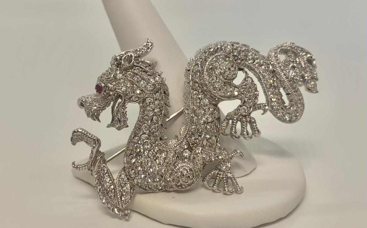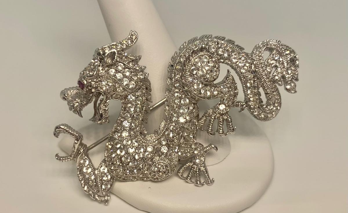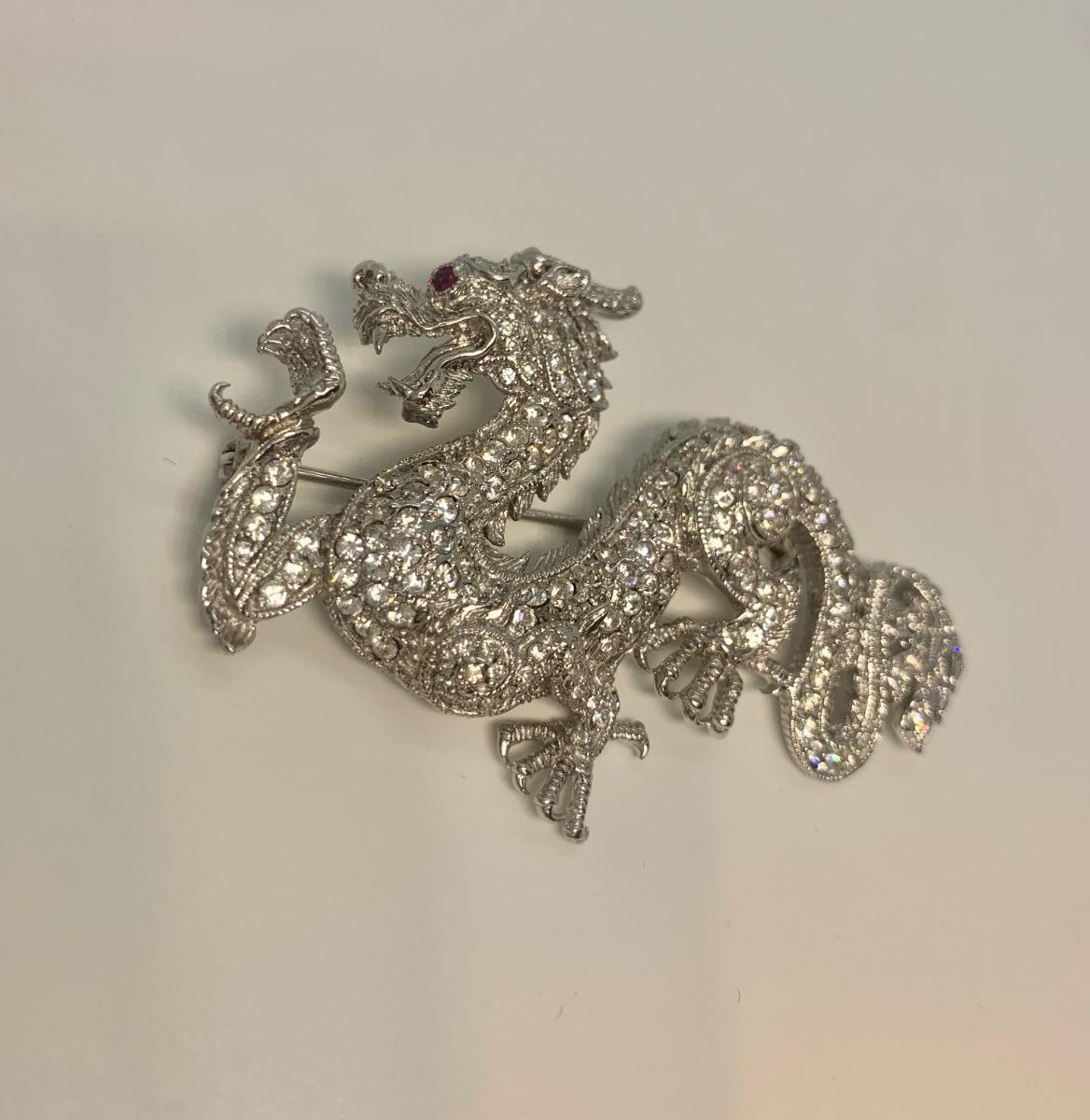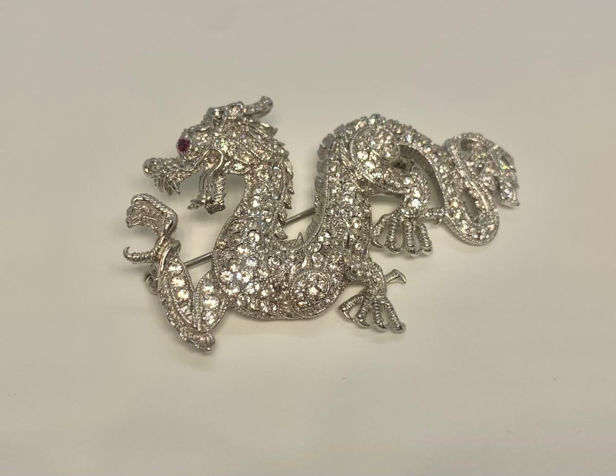 Sterling Brooch Jenna Nicole Swavorski Crystal Chinese Dragon in New Condition Circa 1980's