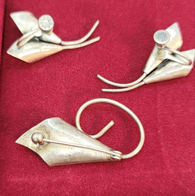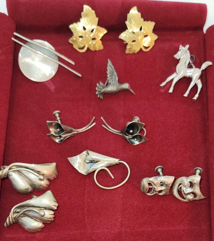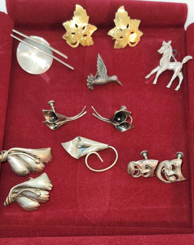 PJ10** Sterling brooches and screw back earrings lot.