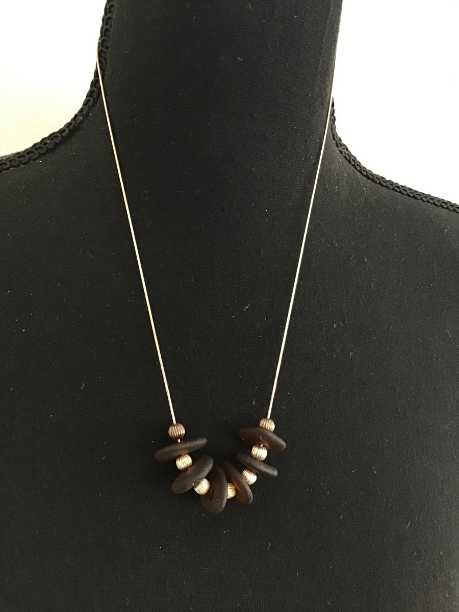 Sterling Brown Frosted Glass Necklace Vintage