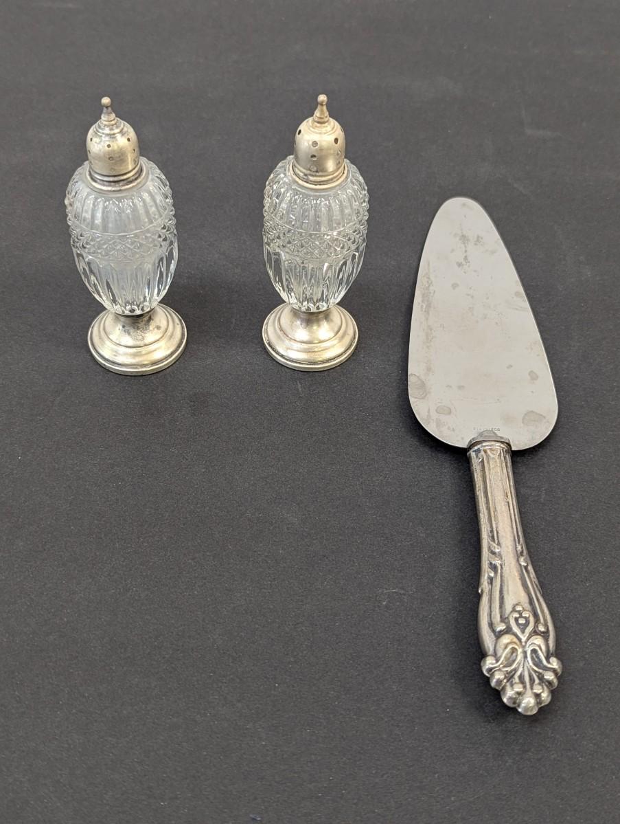 Sterling Cake Server & Sterling Weighted Salt & Pepper Shakers
