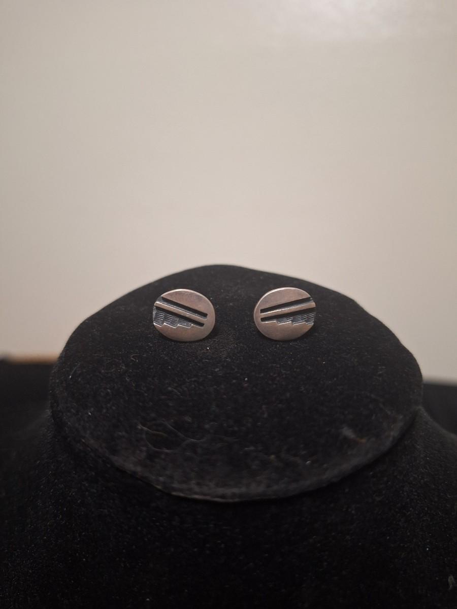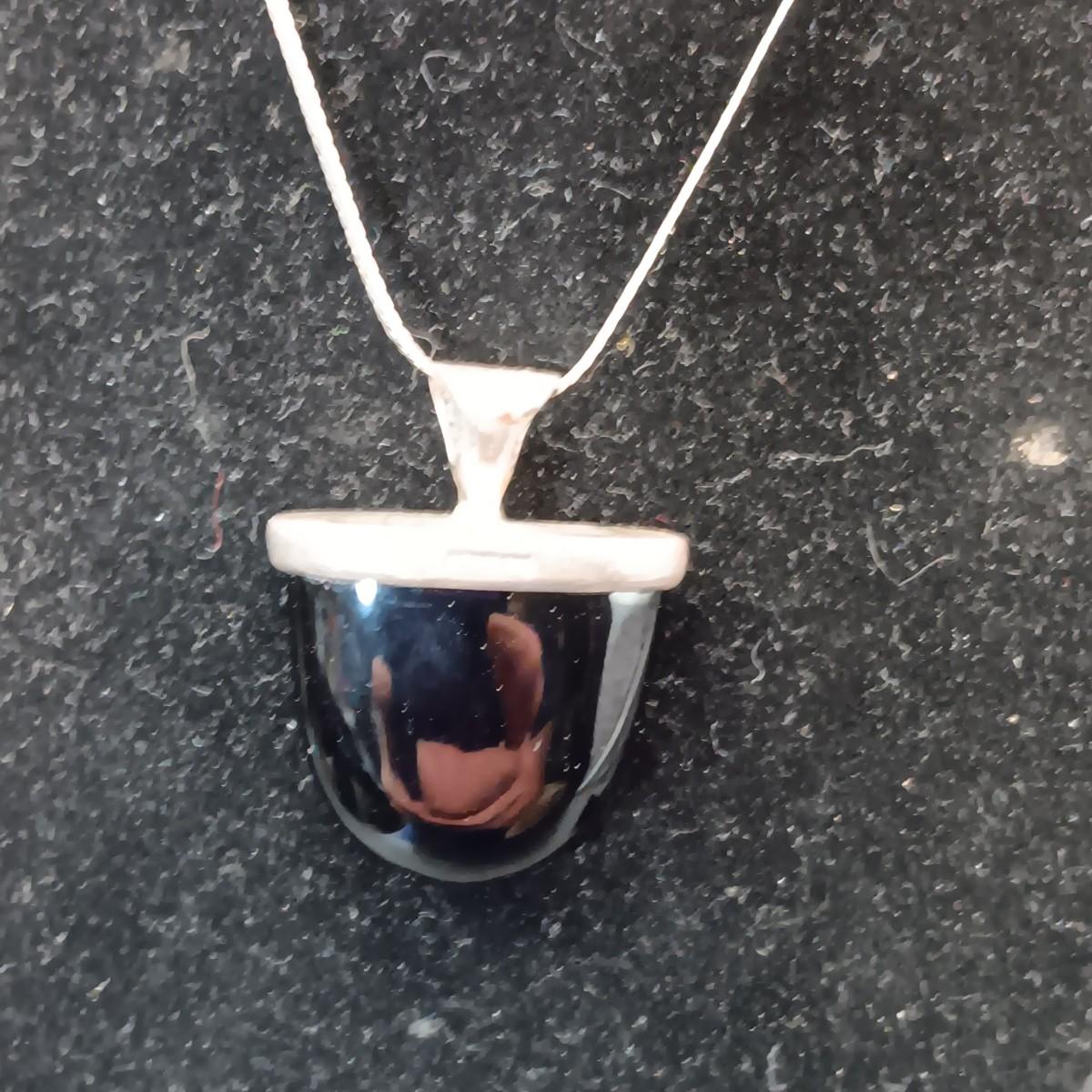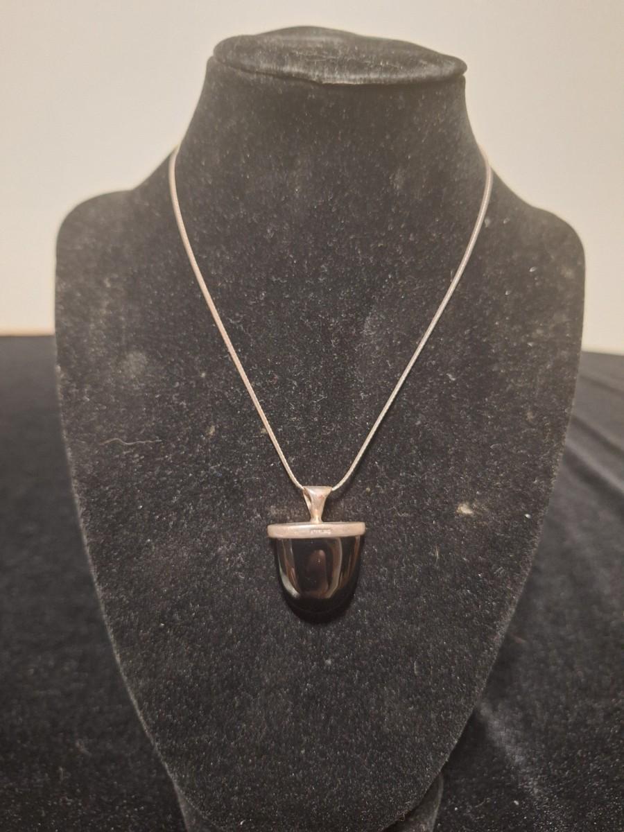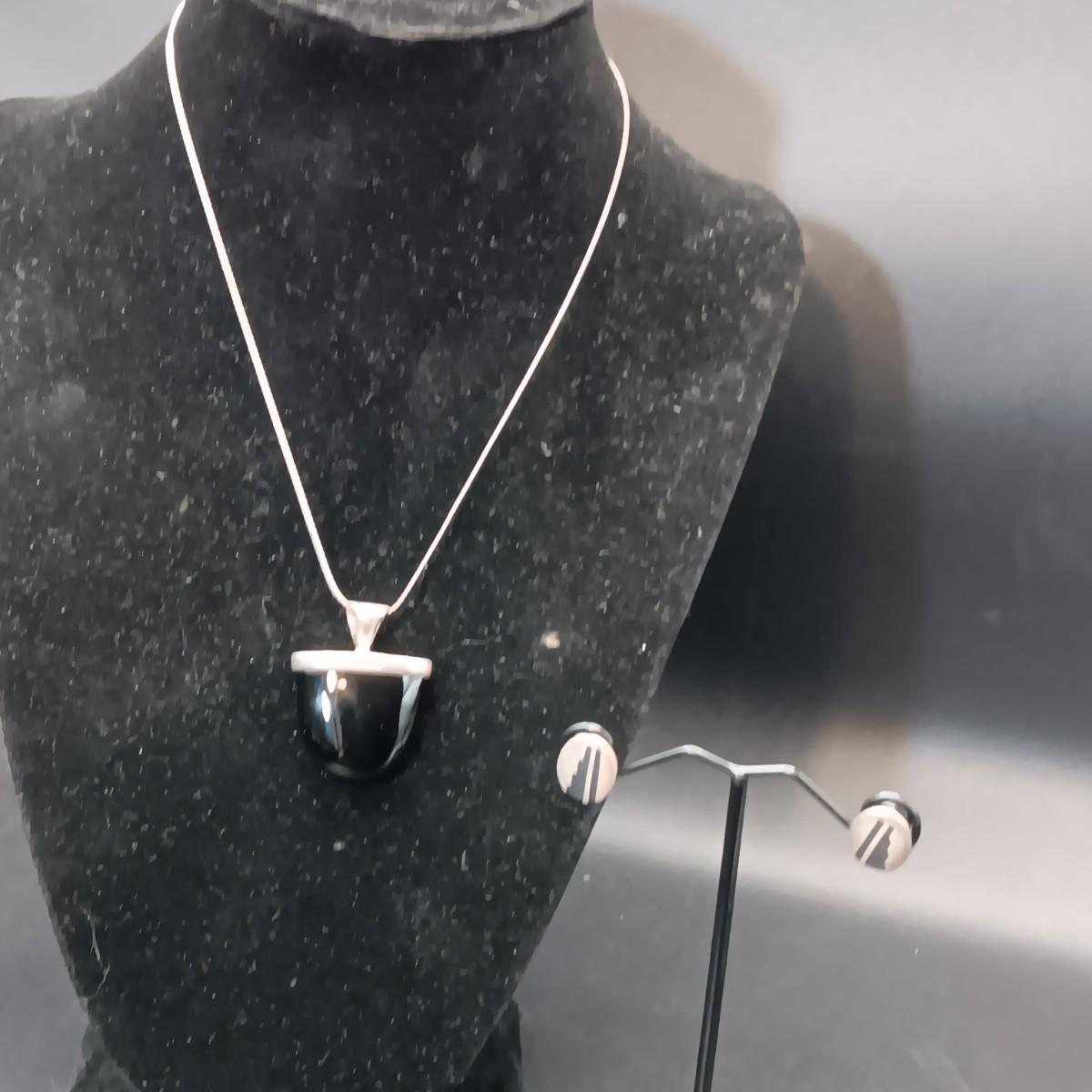 STERLING CHAIN WITH BLACK STONE PENDANT AND STERLING EARRINGS