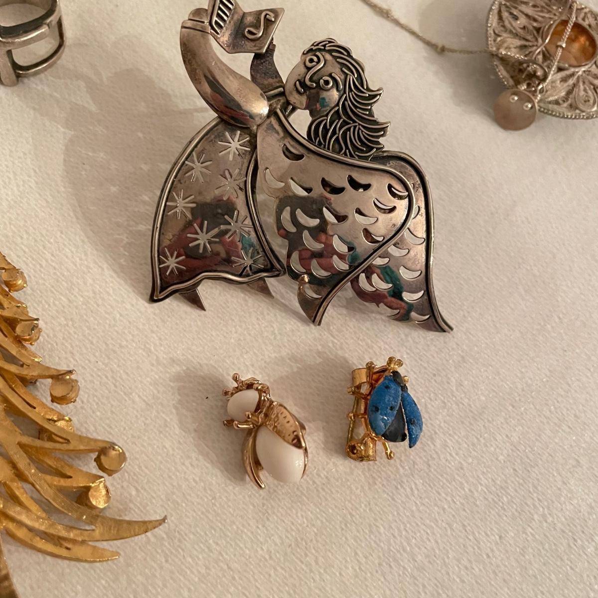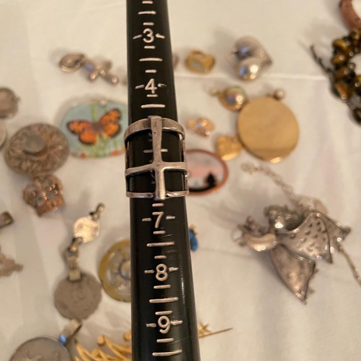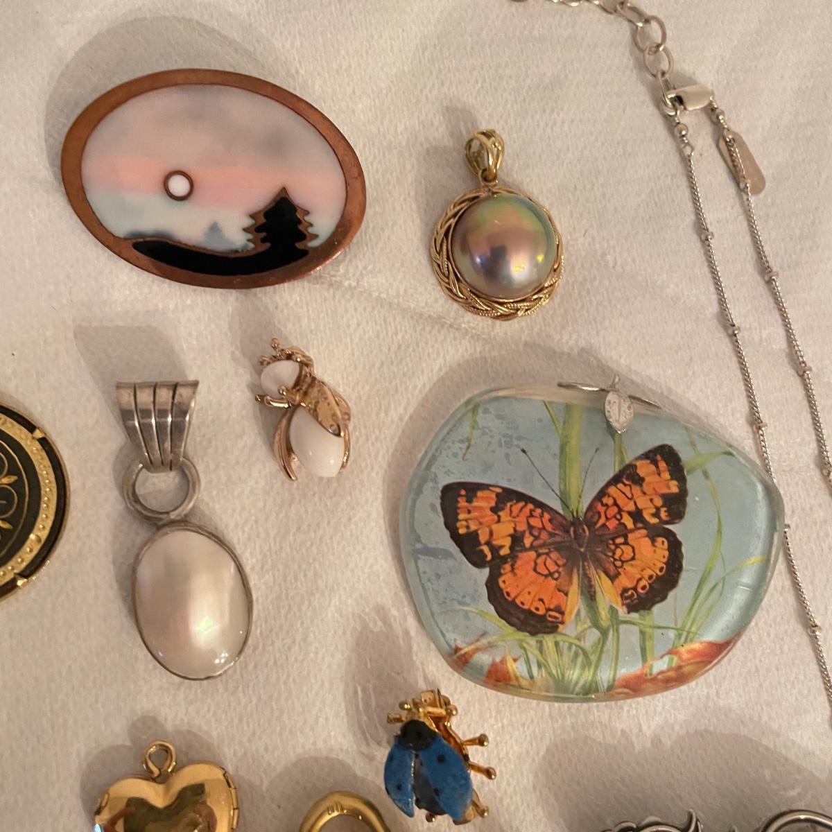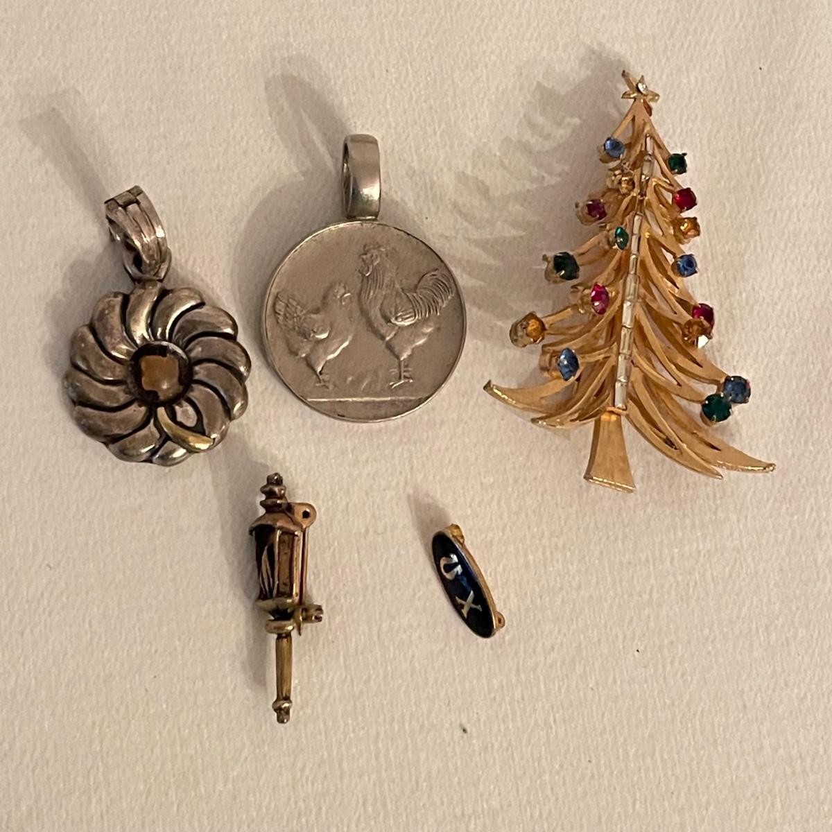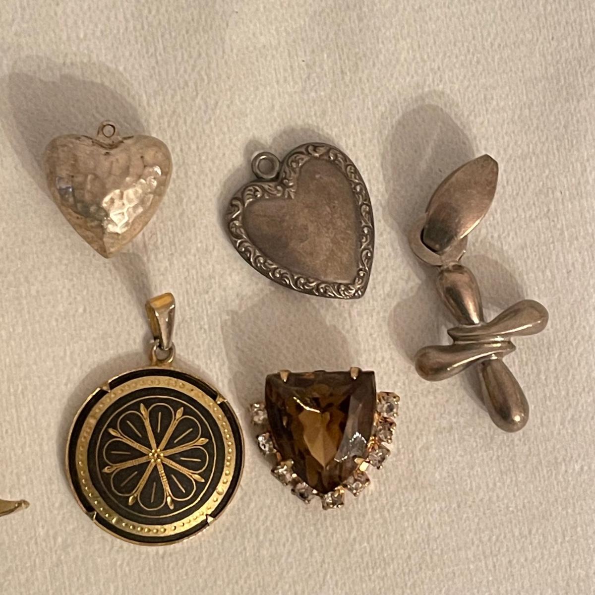 Nice selection of pendants, many marked 925. Lot includes a couple holiday pieces - angels and a gold colored Christmas tree. The larger angel can be used as a pendant, but will need some repairs to be used as a brooch. Three of the four included chains are marked 925. The ring is likely marked 925, but the stamp is illegible. See images. All sales are final. No returns or refunds. Please bid accordingly. Shipping available.