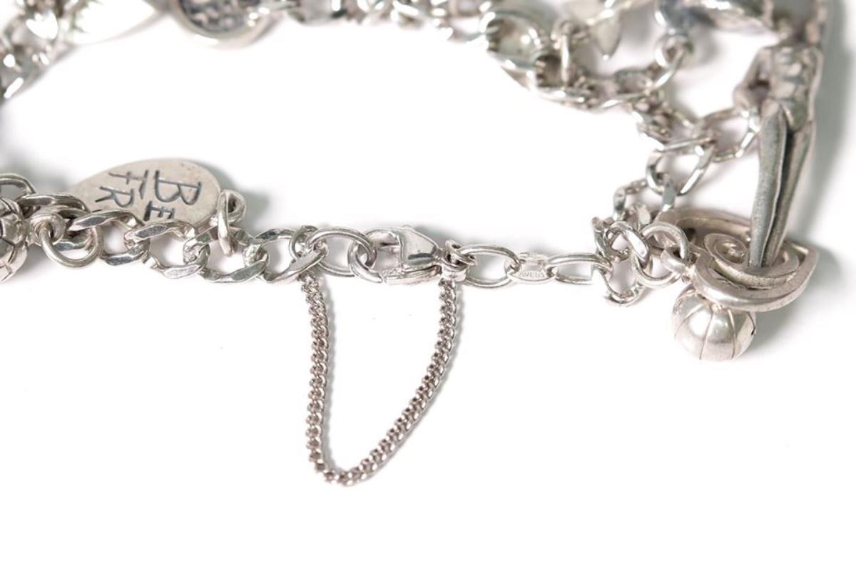Stamped 925 on bracelet, charms are stamped 925. Measures approx. 7". Weighs approx. 35.7g.