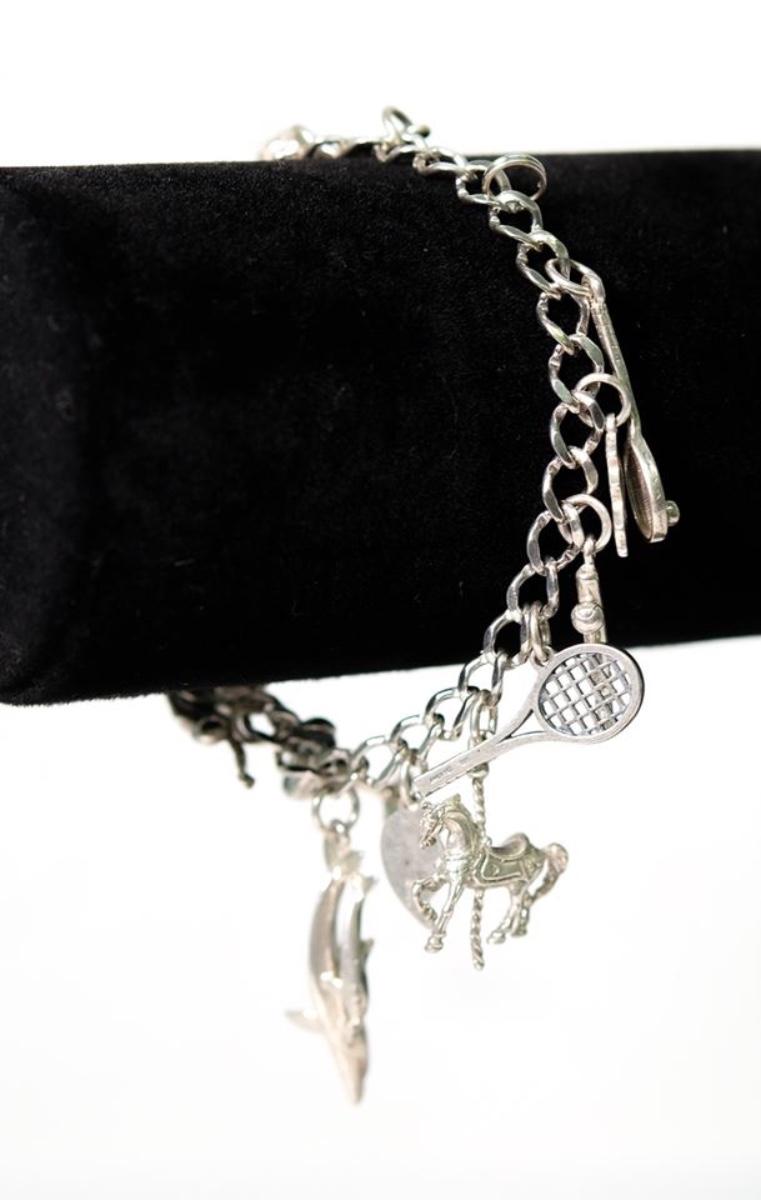 Stamped 925 on bracelet, charms are stamped 925. Measures approx. 7". Weighs approx. 35.7g.