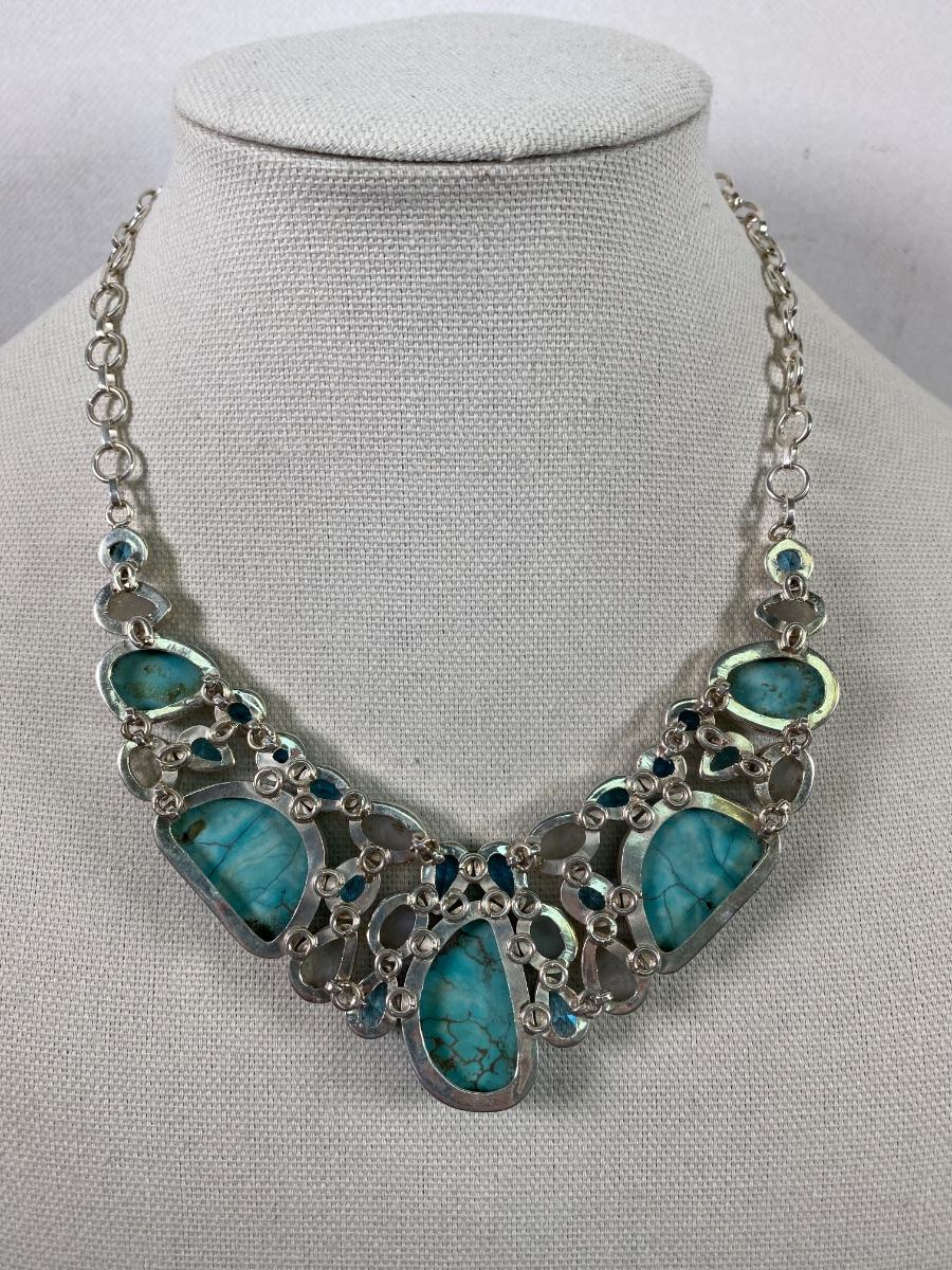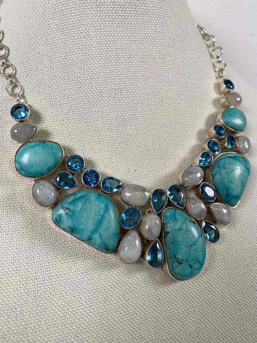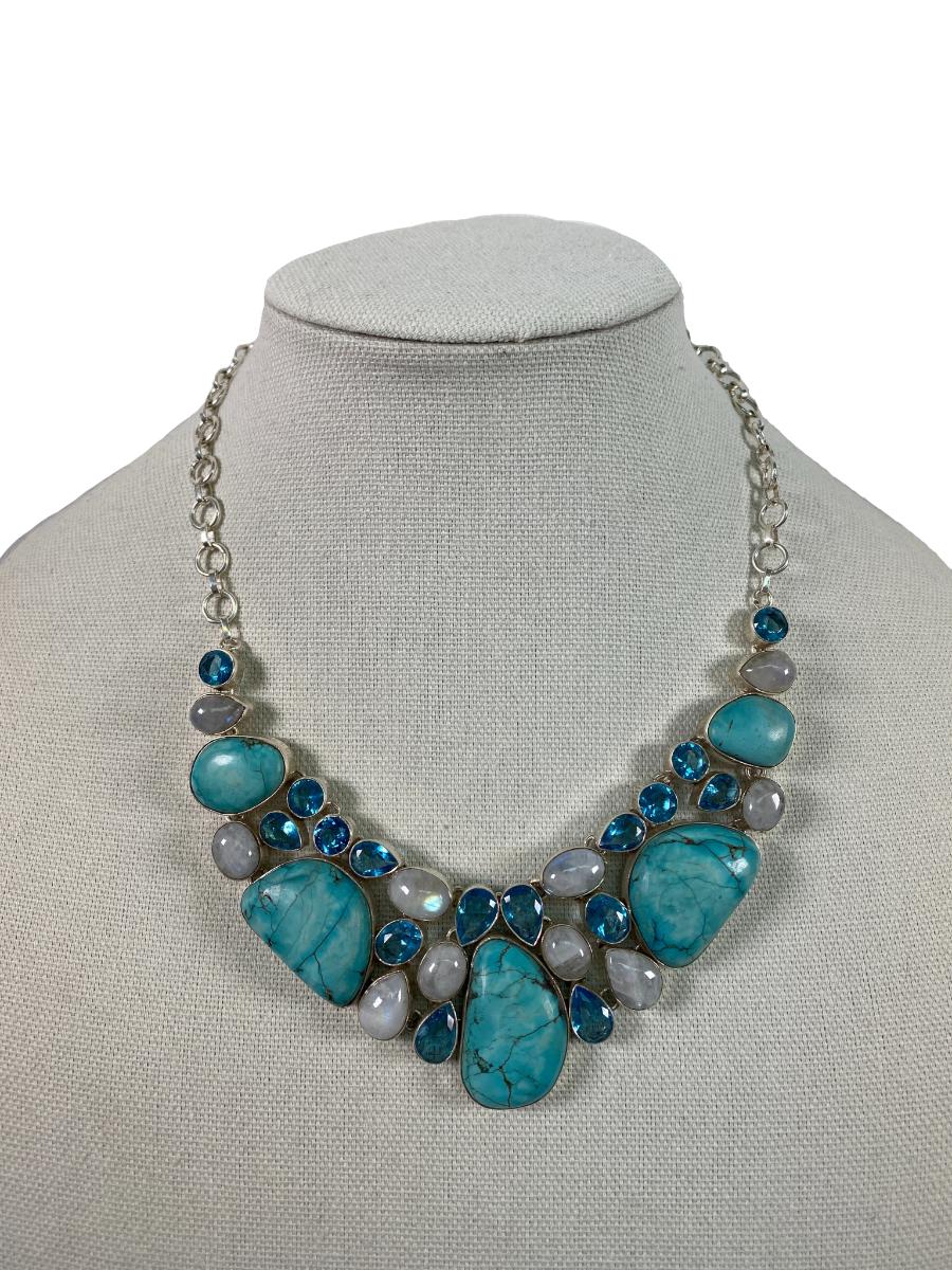 Sterling Chunky Turquoise & Moonstone Necklace