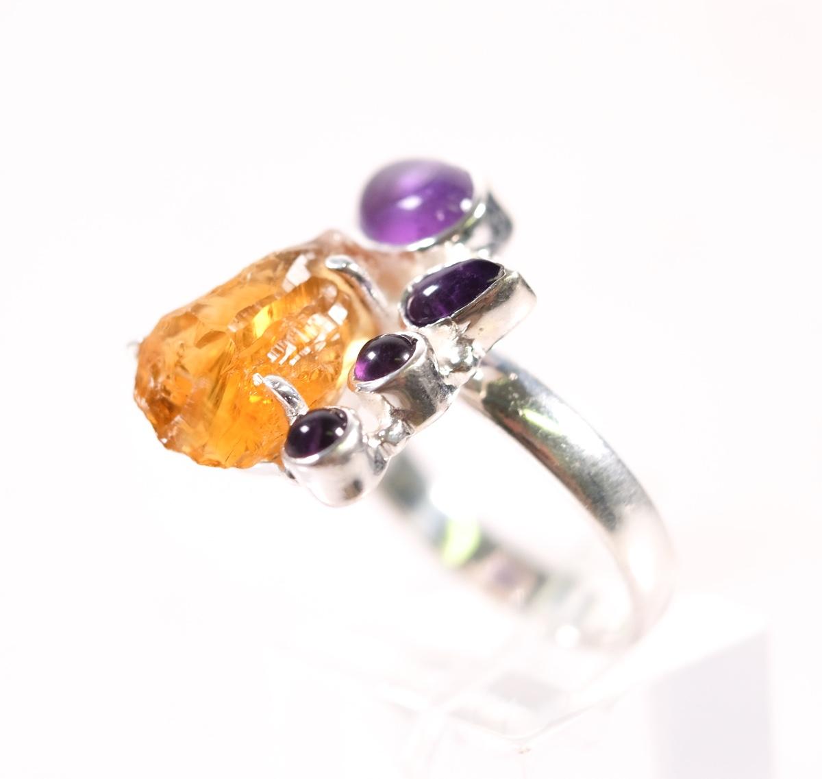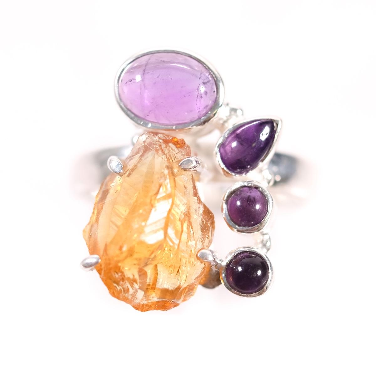 Sterling raw Citrine, Iolite & Amethyst Ring. Size 8.25. Stamped 925. Weighs approx. 5.7 grams.