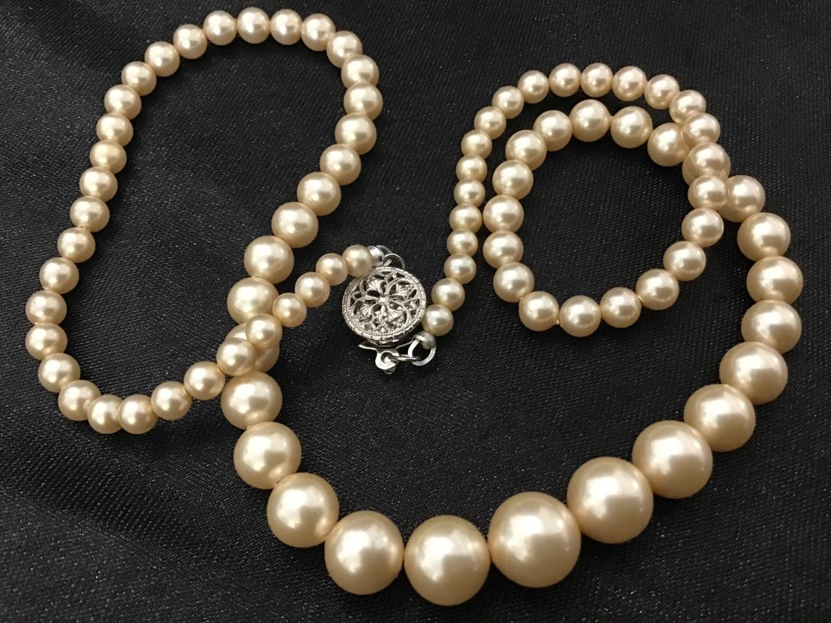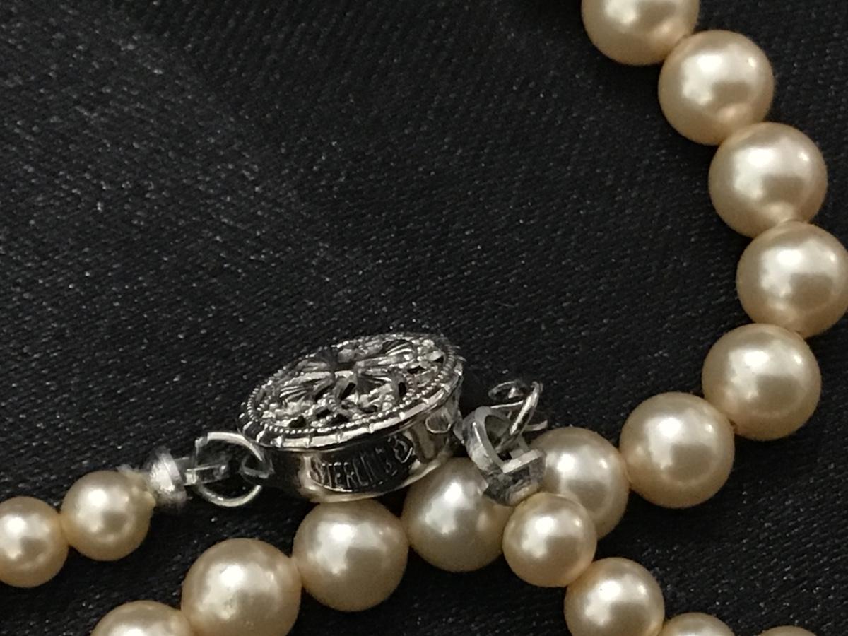Sterling Clasp Vintage Ivory Pearl Style Necklace