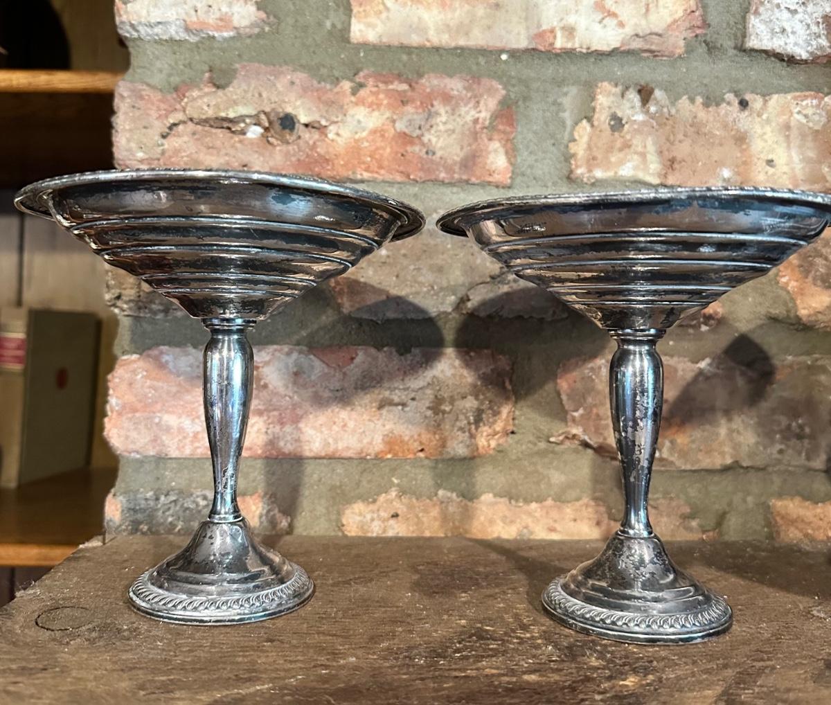 Two sterling compotes