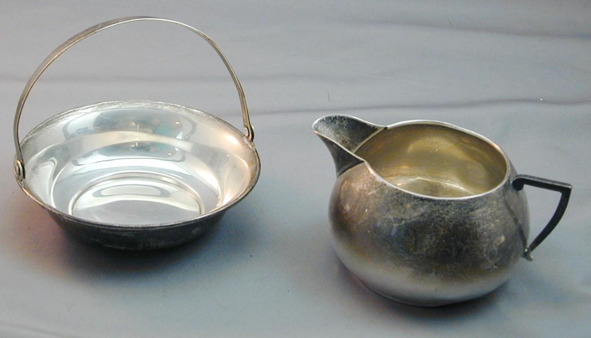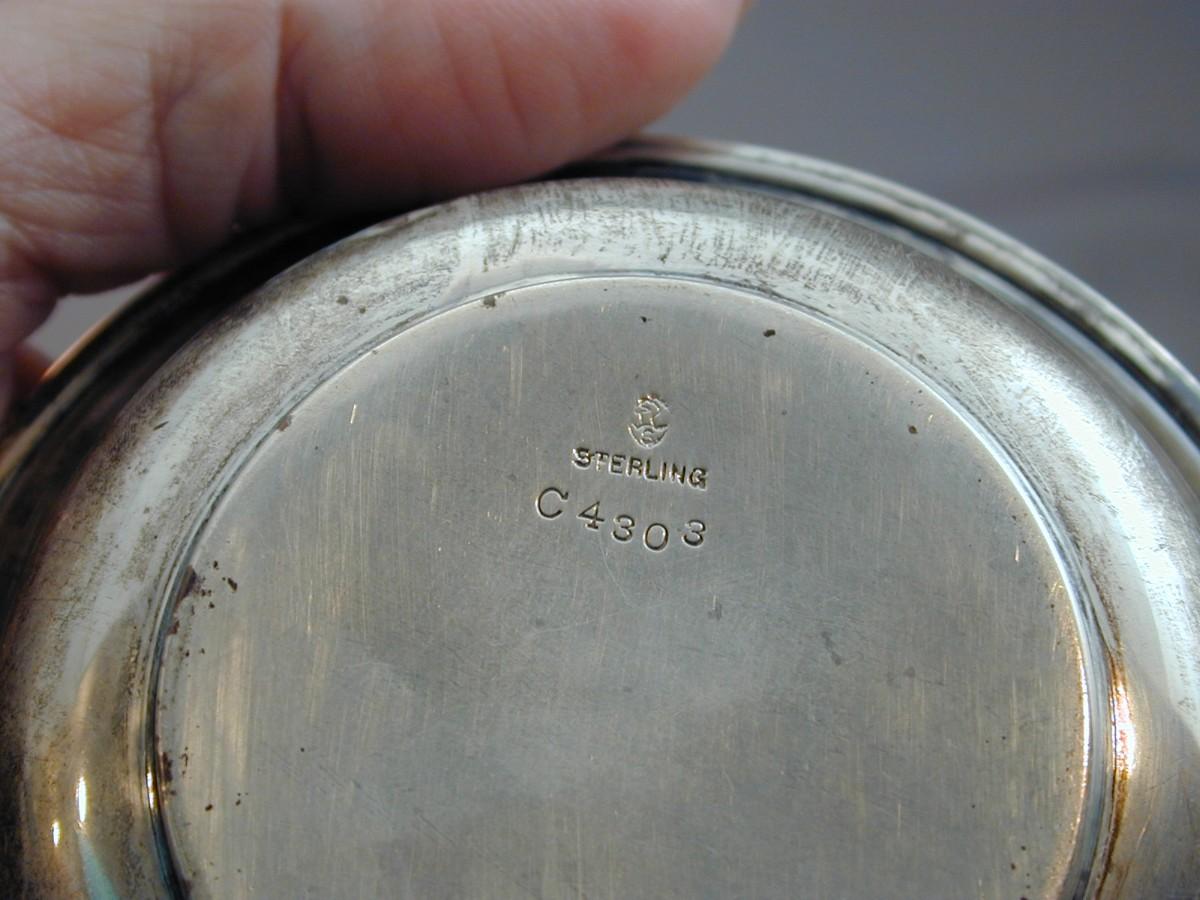 Sterling creamer with handled tray - 115 grams, marked sterling C4303, tray is 3.5" in diameter and the creamer is 2 inches tall