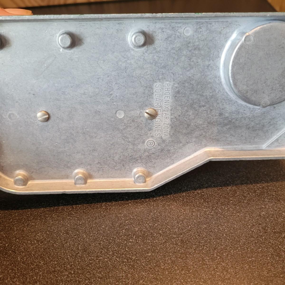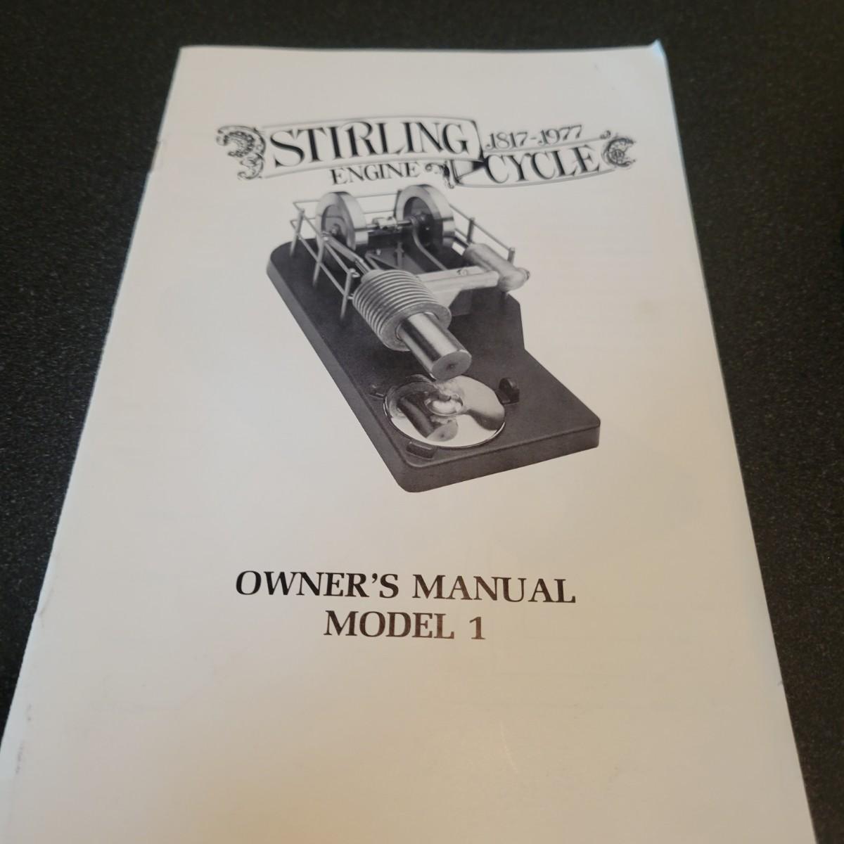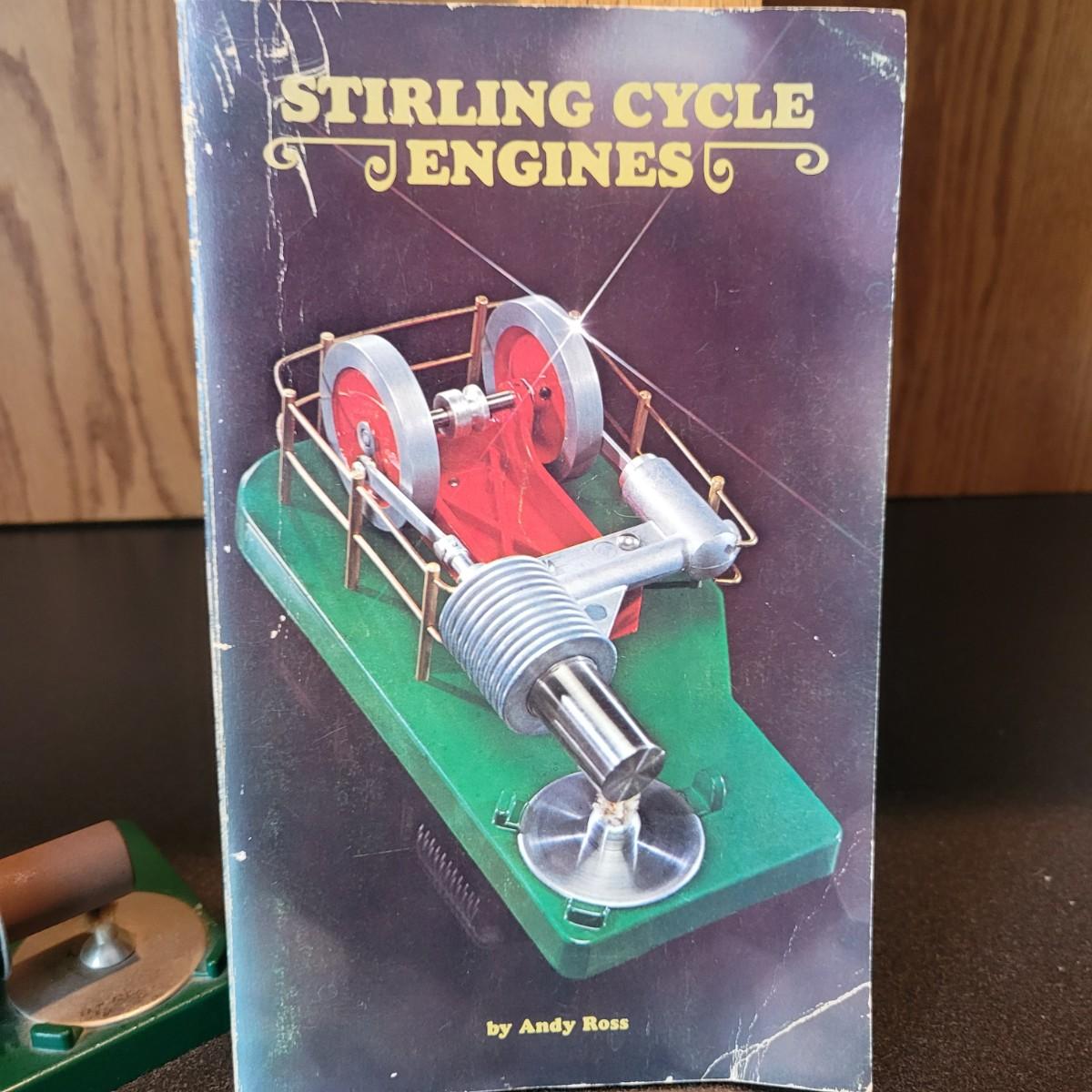 A replica Stirling Cycle engine that appears to have had minimal use amd measures approximately 7.5" x 4" x 3"H. Also included is an instruction manual and a book on the history of Stirling Cycle engines. Shipping available