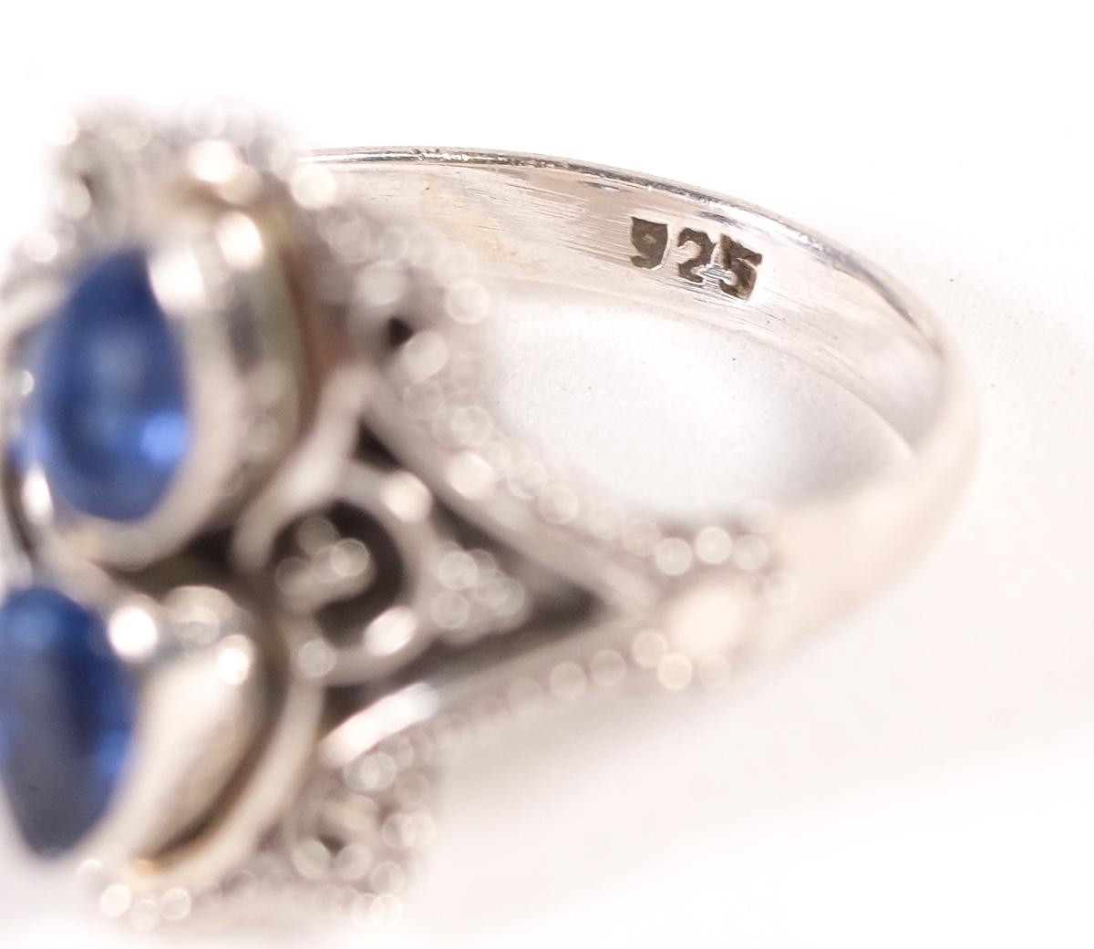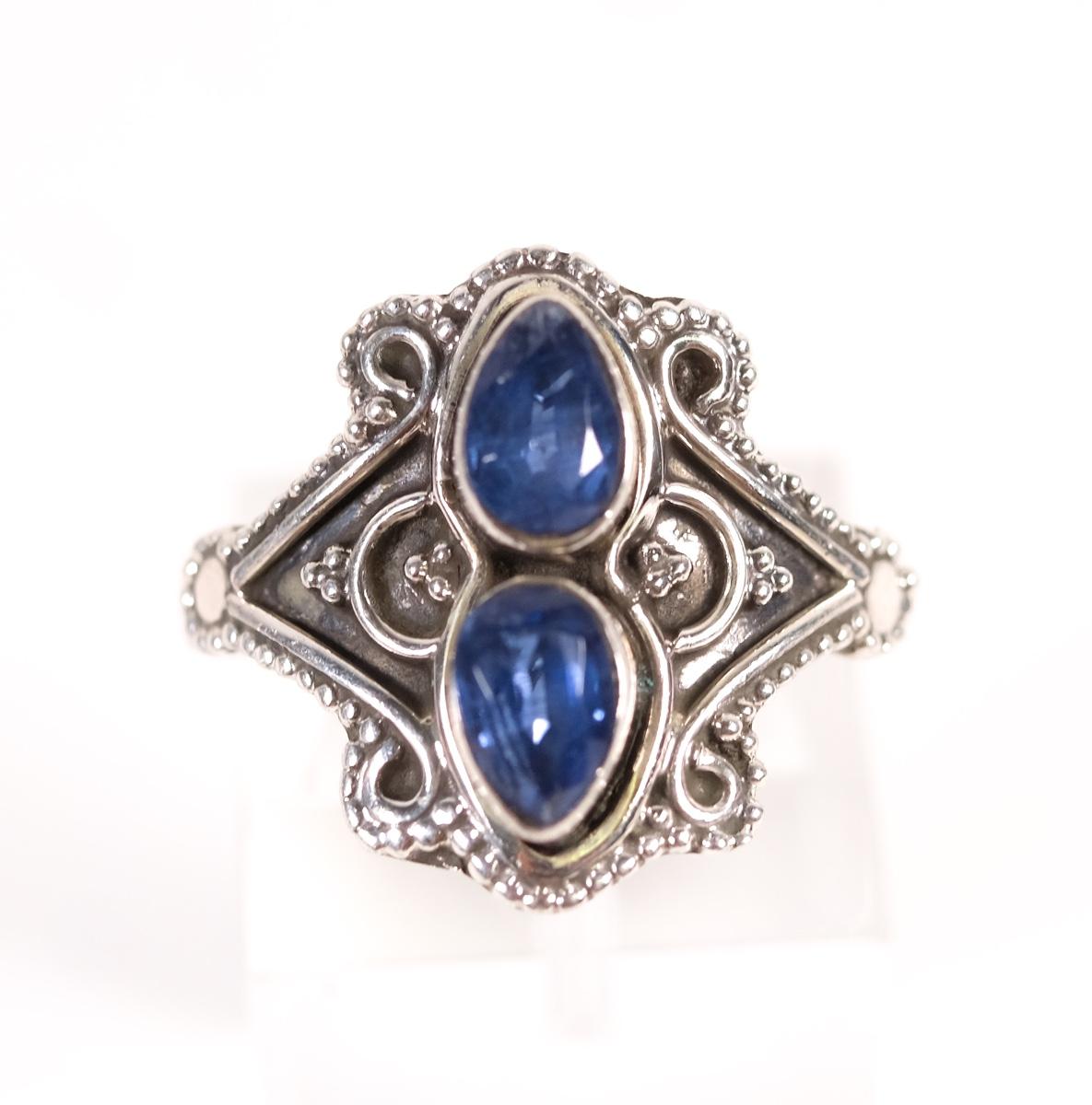 Sterling Double Dark Blue Topaz Gemstone Ring. Size 8.25. Stamped 925. Weighs approx. 3.5 grams.
