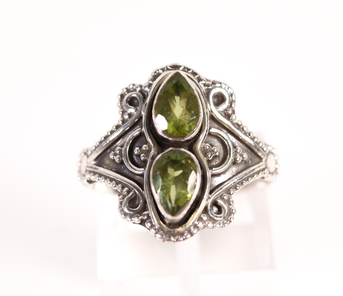 Sterling Double Emerald Gemstone Ring, Size 8