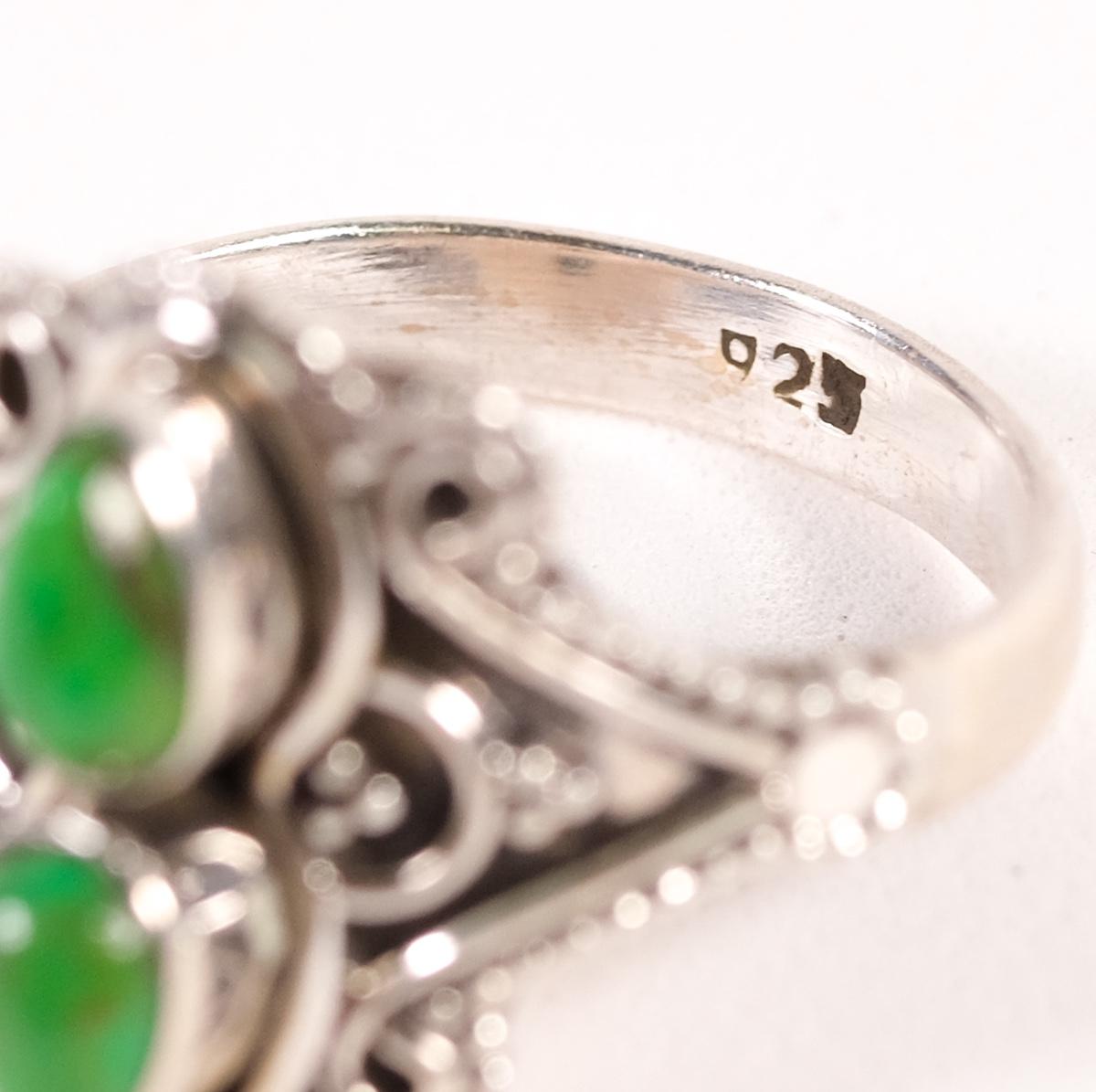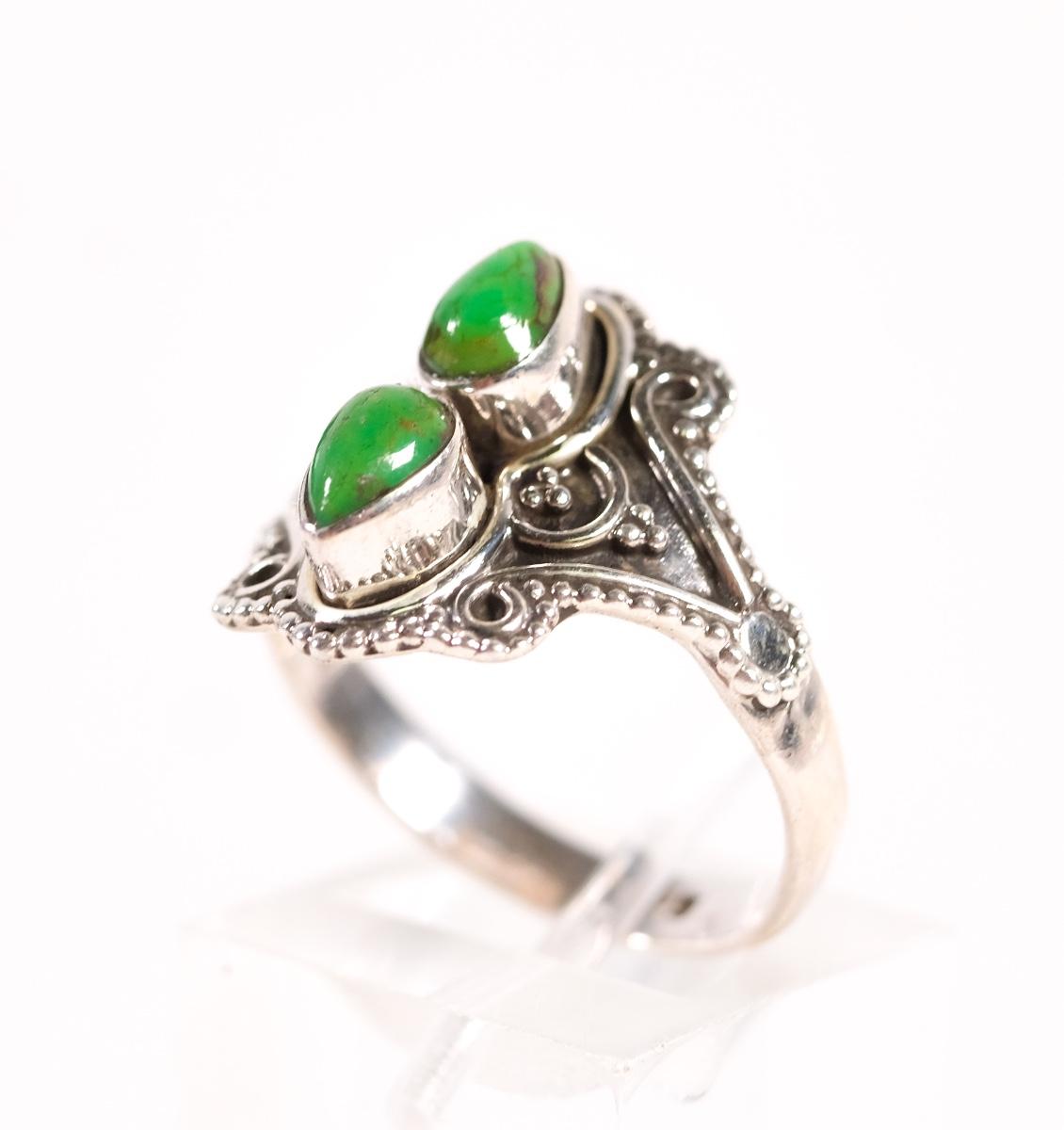 Sterling Double Gaspeite Gemstone Ring. Size 8. Stamped 925. Weighs approx. 3.7 grams.