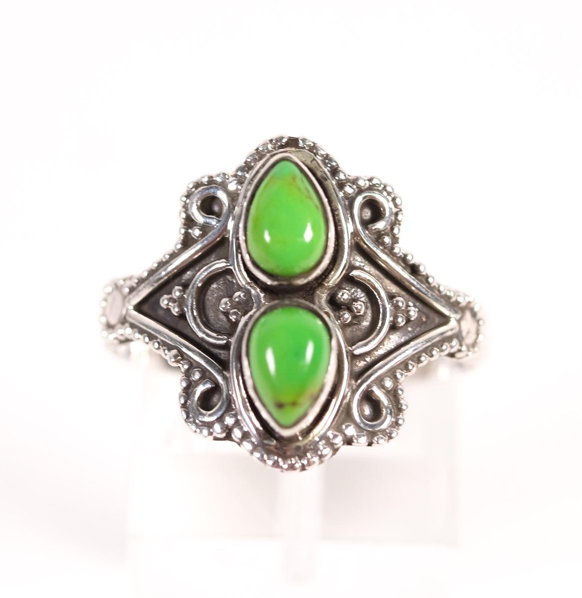 Sterling Double Gaspeite Ring. Size 9.5. stamped 925. Weighs approx. 3.8 grams.