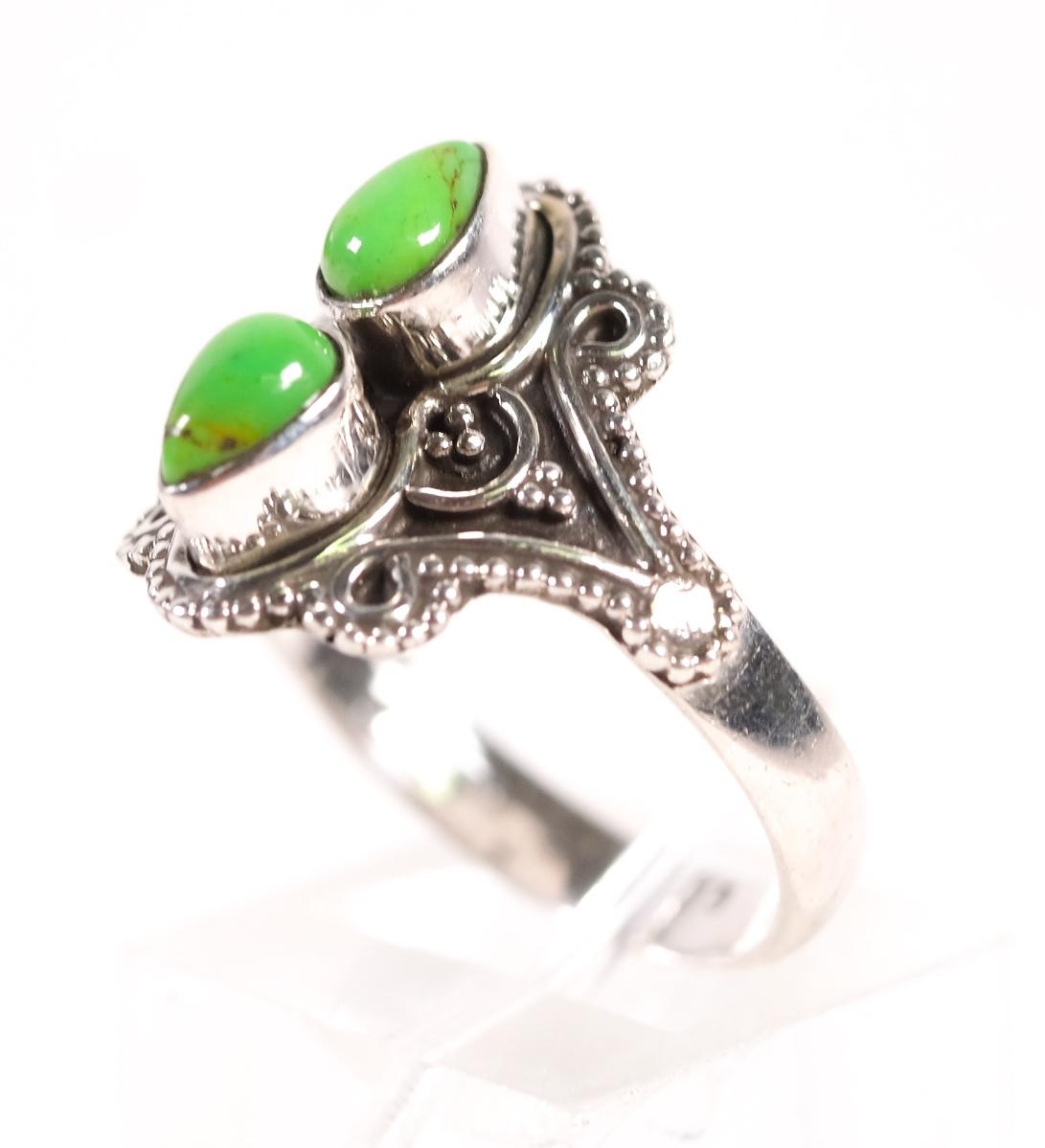 Sterling Double Gaspeite Ring. Size 9.5. stamped 925. Weighs approx. 3.8 grams.