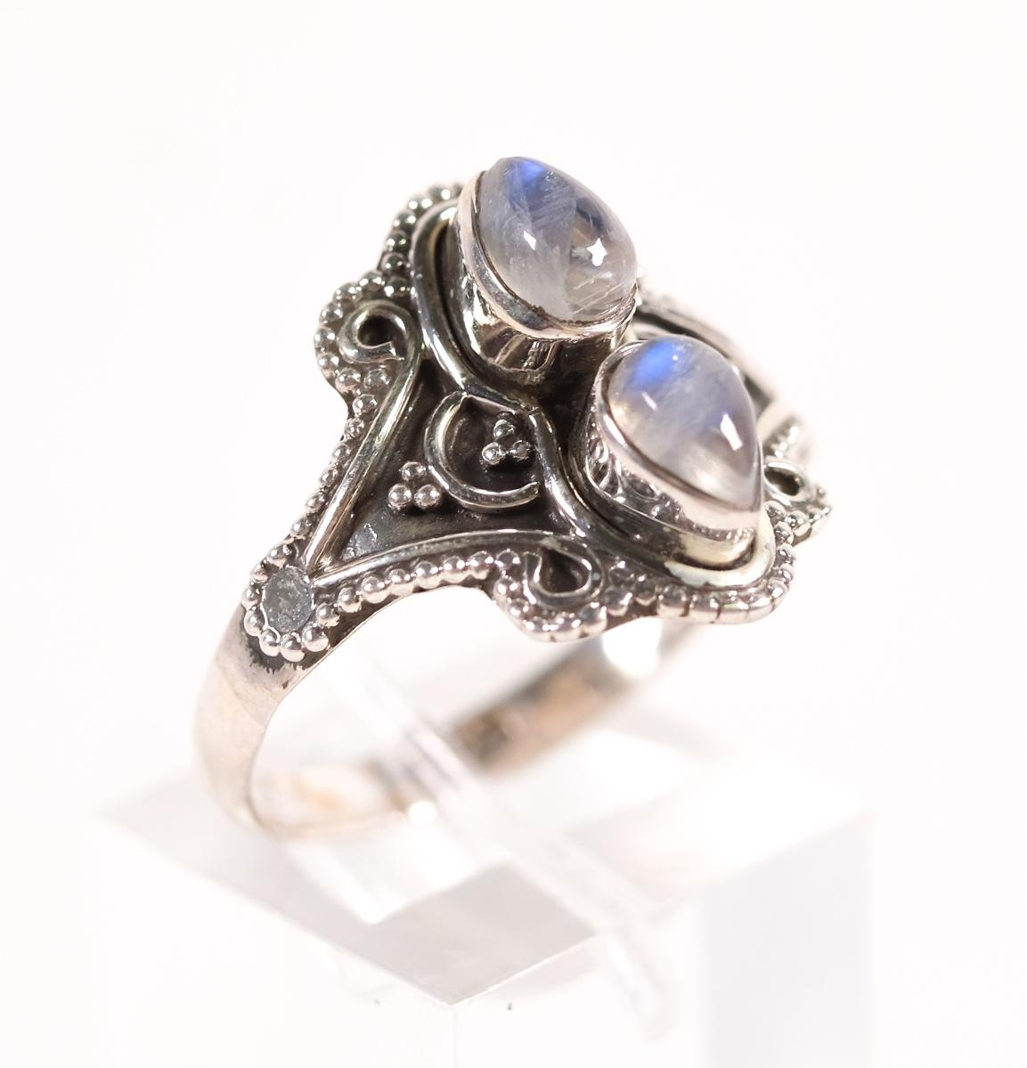 Sterling Double Moonstone Ring, Size 9.5