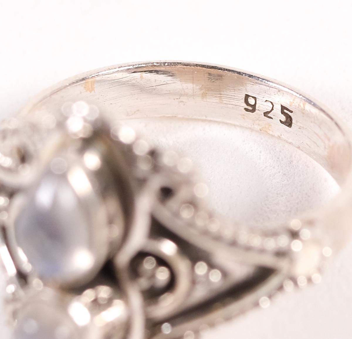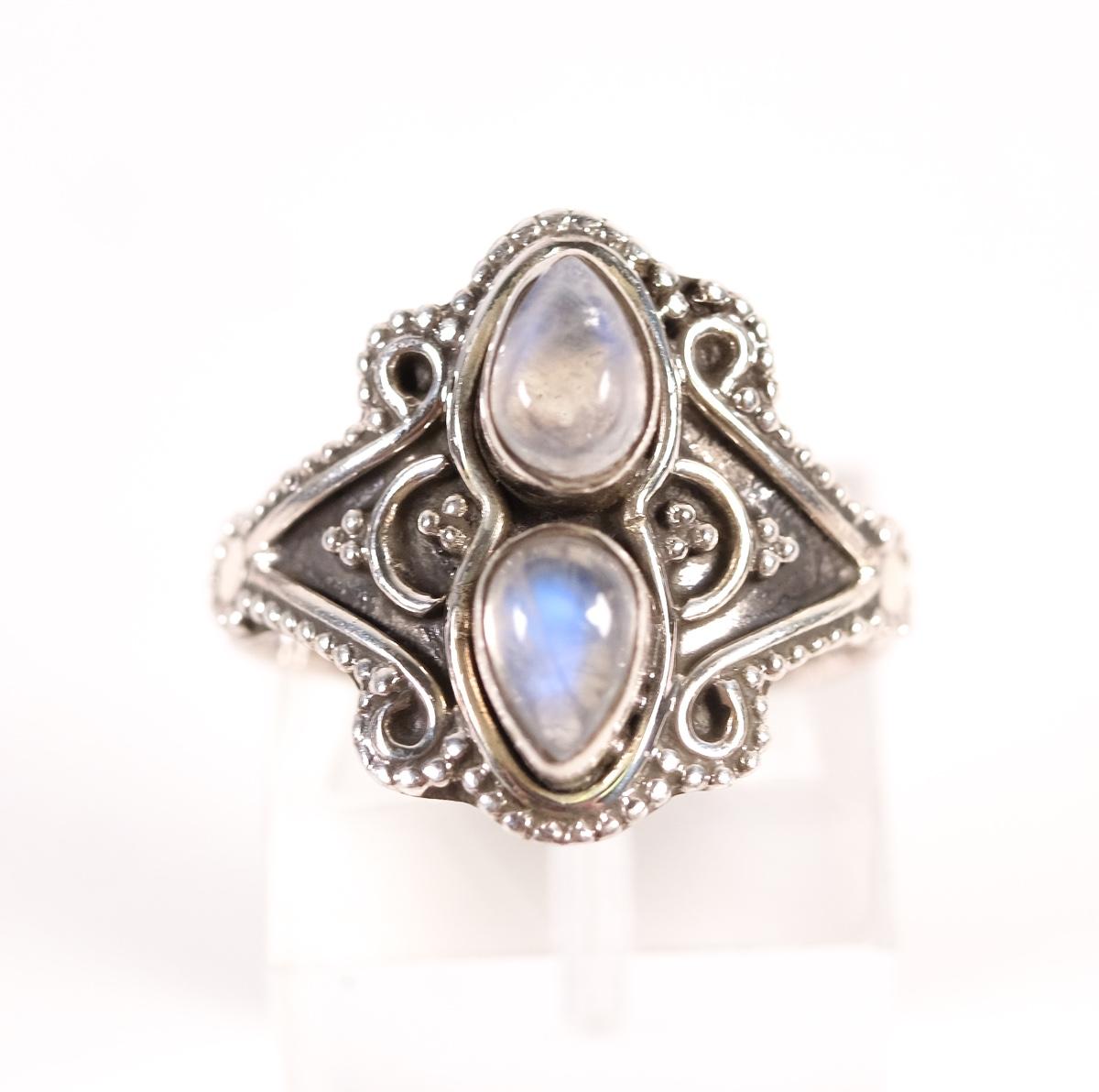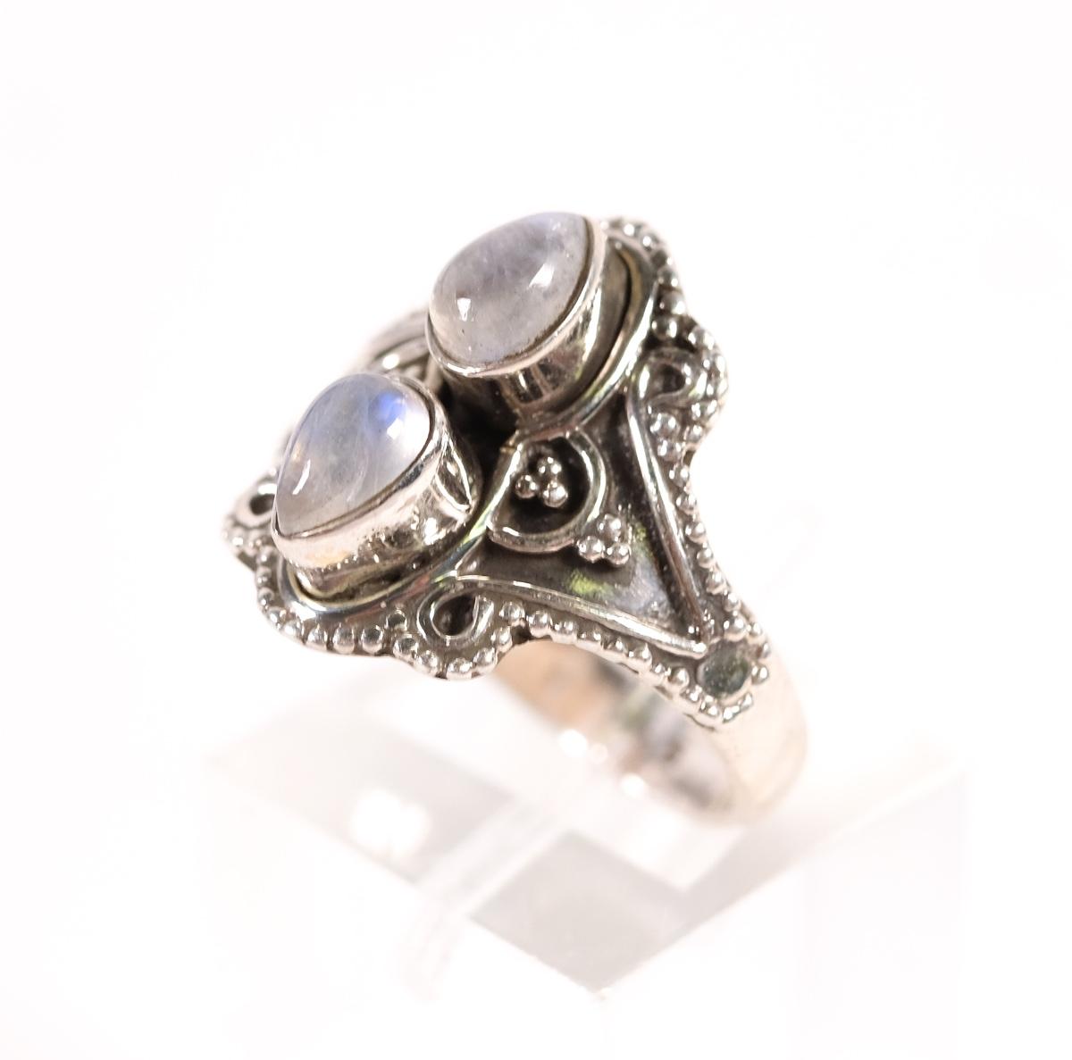 Sterling Double Moonstone Ring. Size 6.5. stamped 925. Weighs approx. 3.7 grams.
