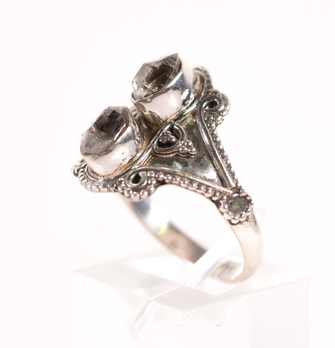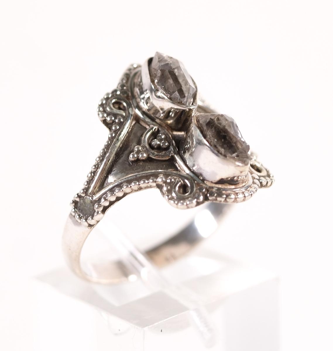 Sterling Double Raw Quartz Ring. Size 9. Stamped 925. Weighs approx. 3.7 grams.