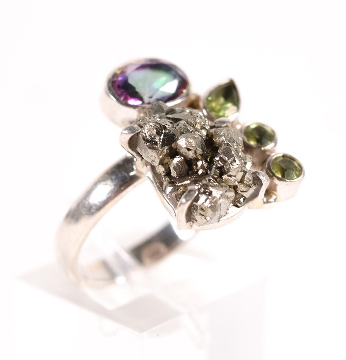 Sterling Emerald & Meteorite Cluster Ring. Size 7.25. Stamped 925. Weighs approx. 6 grams.