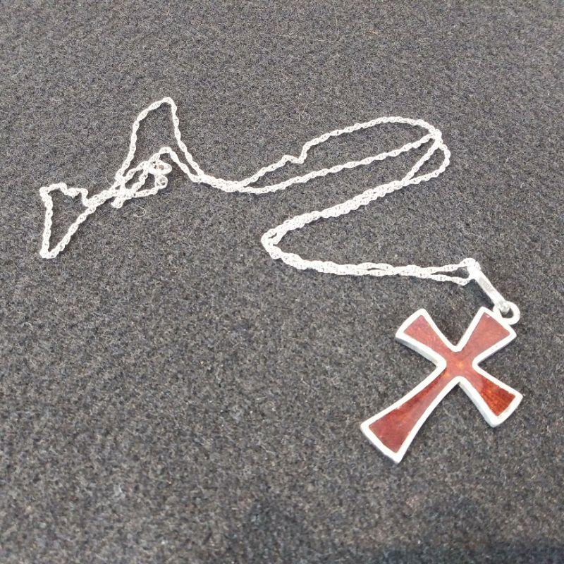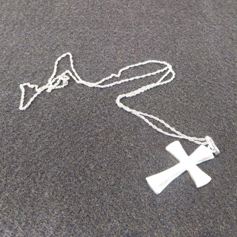 The chain is marked but the cross is not; however, the clasp holding the chain to the cross is marked We are assuming the entirety is sterling silver. The chain measures 23-inches long and total hanging length is 14-inches. Very nice for a man or woman. Reserve/Starting Bid is $10.