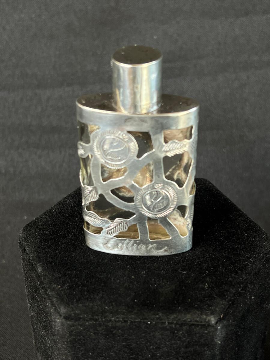 Sterling Encased Signed Perfume Bottle Nice Hallmarks marked Lilian at the base