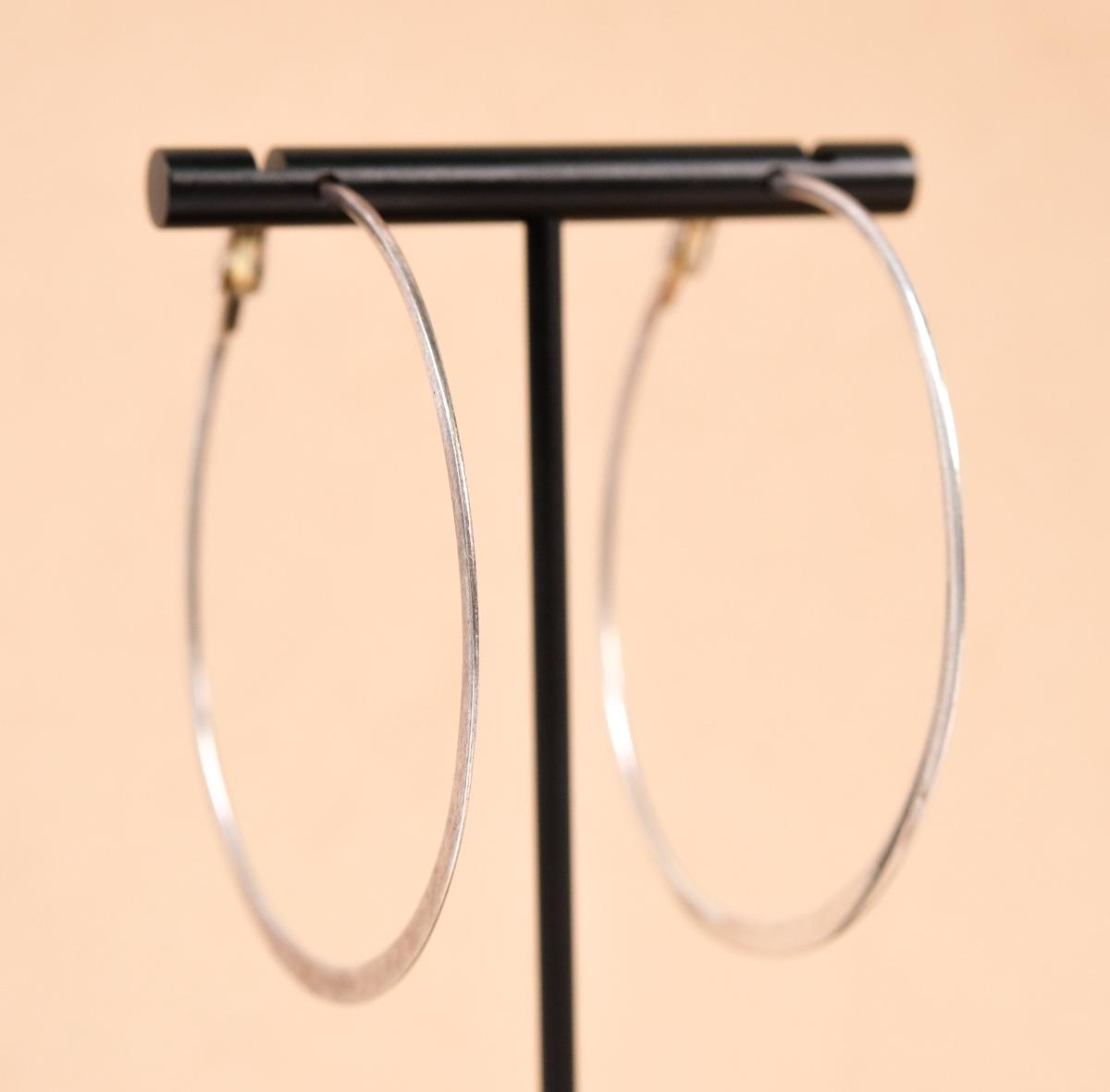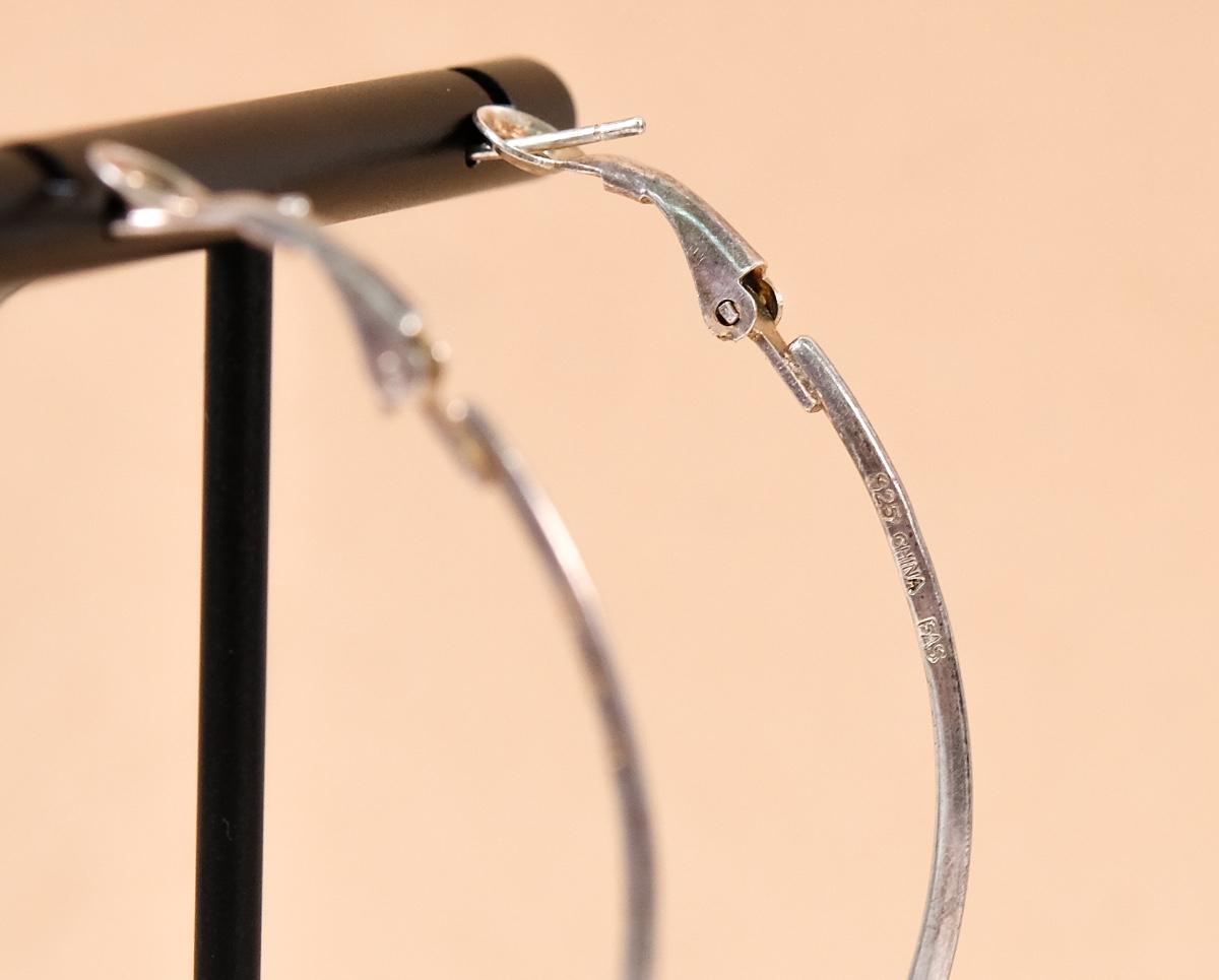 Sterling flat hoop earrings. Stamped 925 CHINA FAS. Measures approx. 2.25". Weighs approx. 6.2 grams.