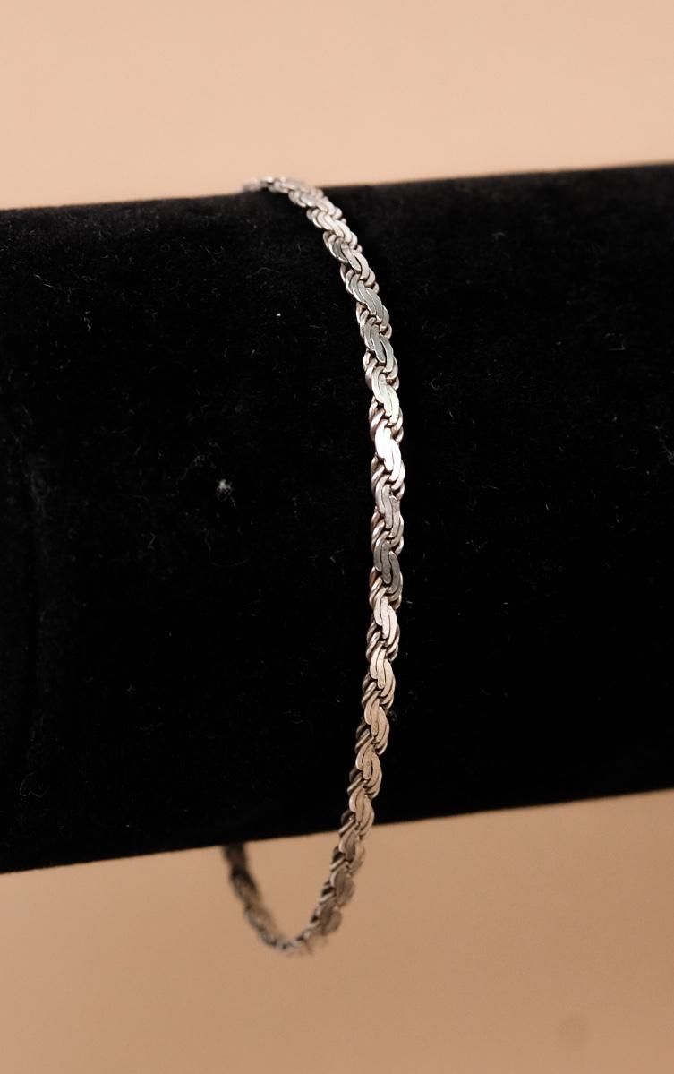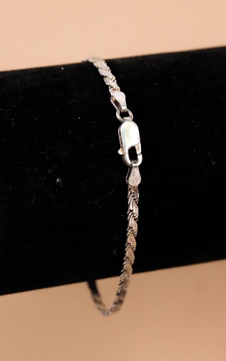 Sterling flat rope chain bracelet. Stamped 925 ITALY with a "FMC" hallmark. Measures approx. 7.25" with a 1.57 mm width. Weighs approx. 3.4 grams.