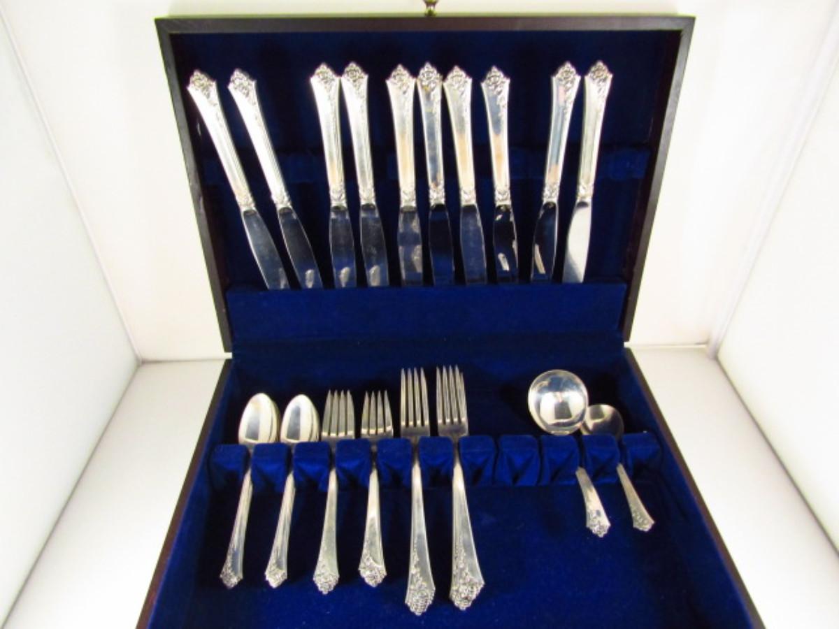 Sterling Flatware Damask Rose Pattern by Oneida- 42 Pieces with Approx Weight of 1352 Grams