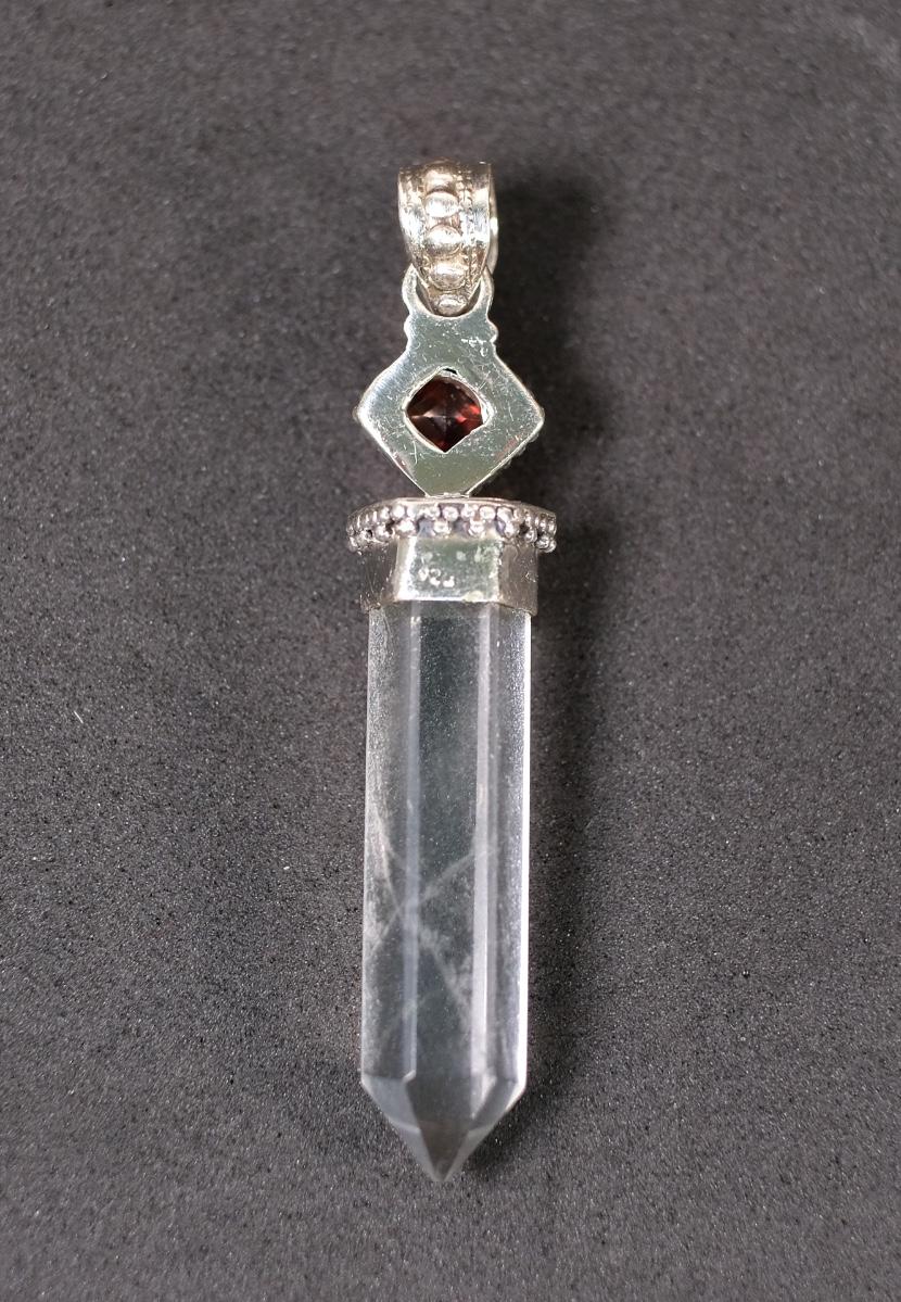 Sterling Garnet & Quartz Point Pendant. Stamped 925. Measures approx. 2". Weighs approx. 6.3 grams.