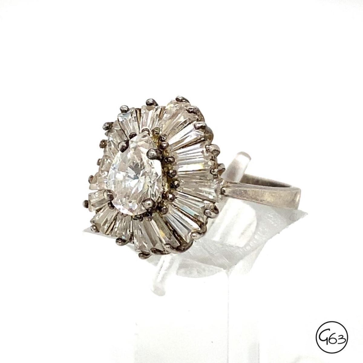 testing as glass. Stamped 925. Size 6. Weighs approx. 4.6g.