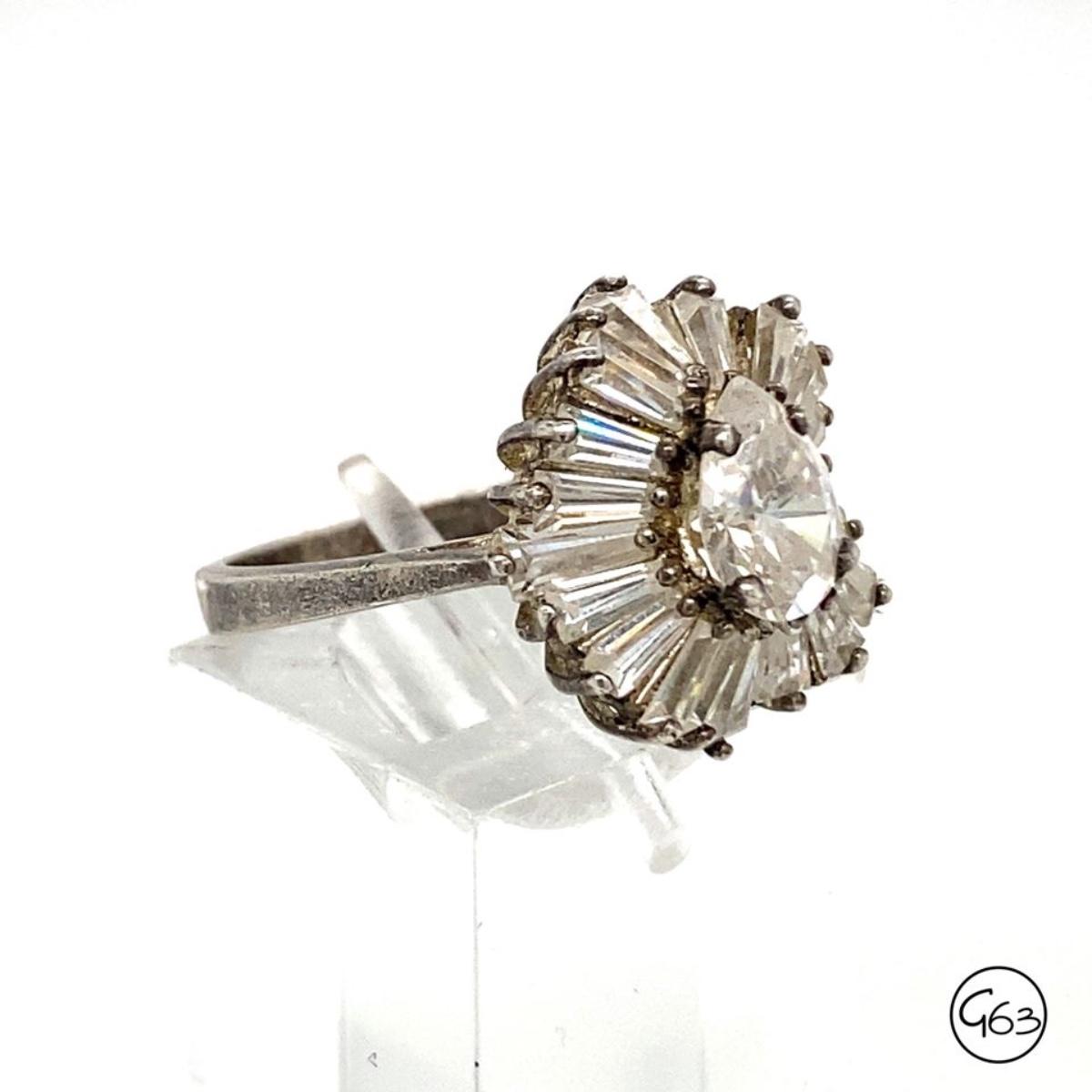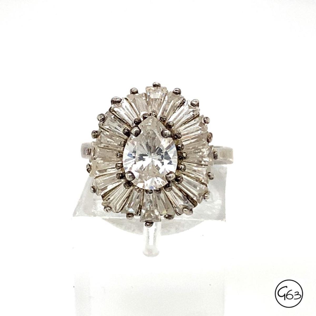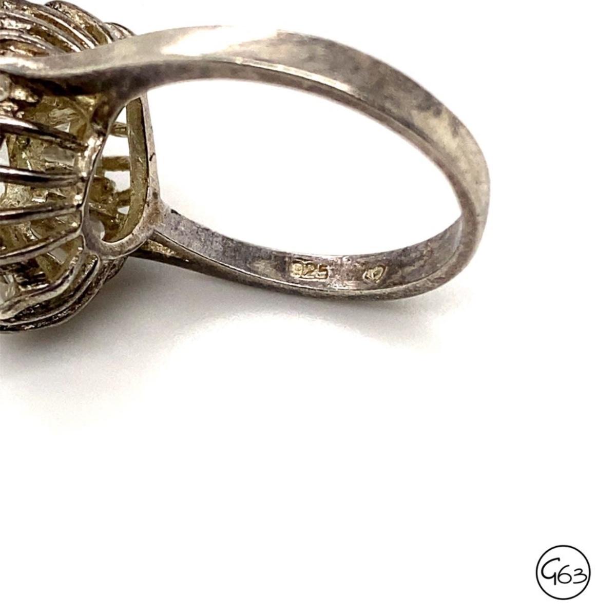 testing as glass. Stamped 925. Size 6. Weighs approx. 4.6g.