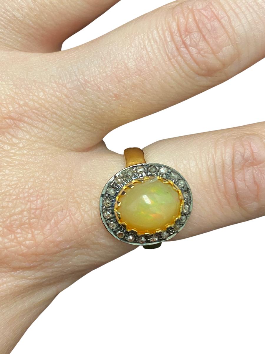 Sterling Gold Tone Opal & Diamond Chips Ring, Size 6.75