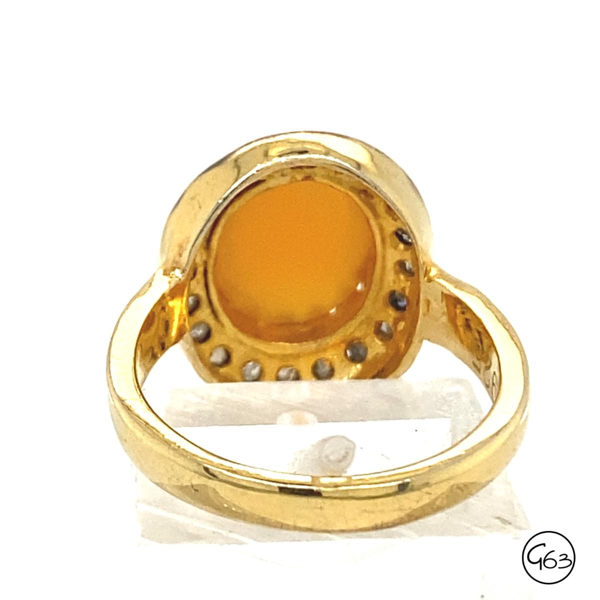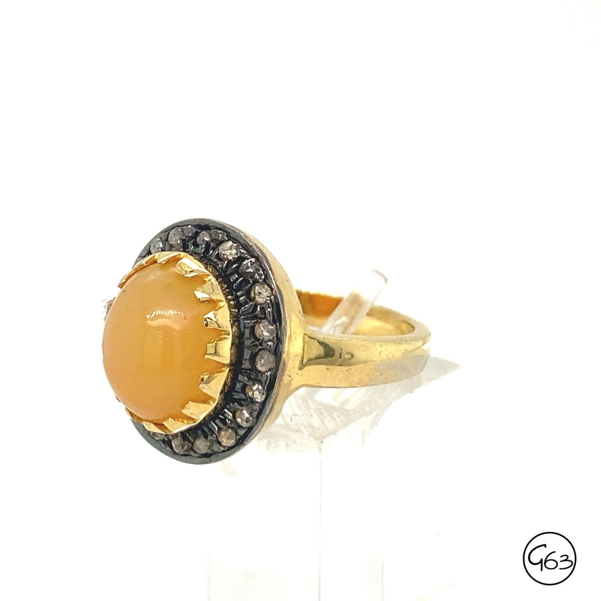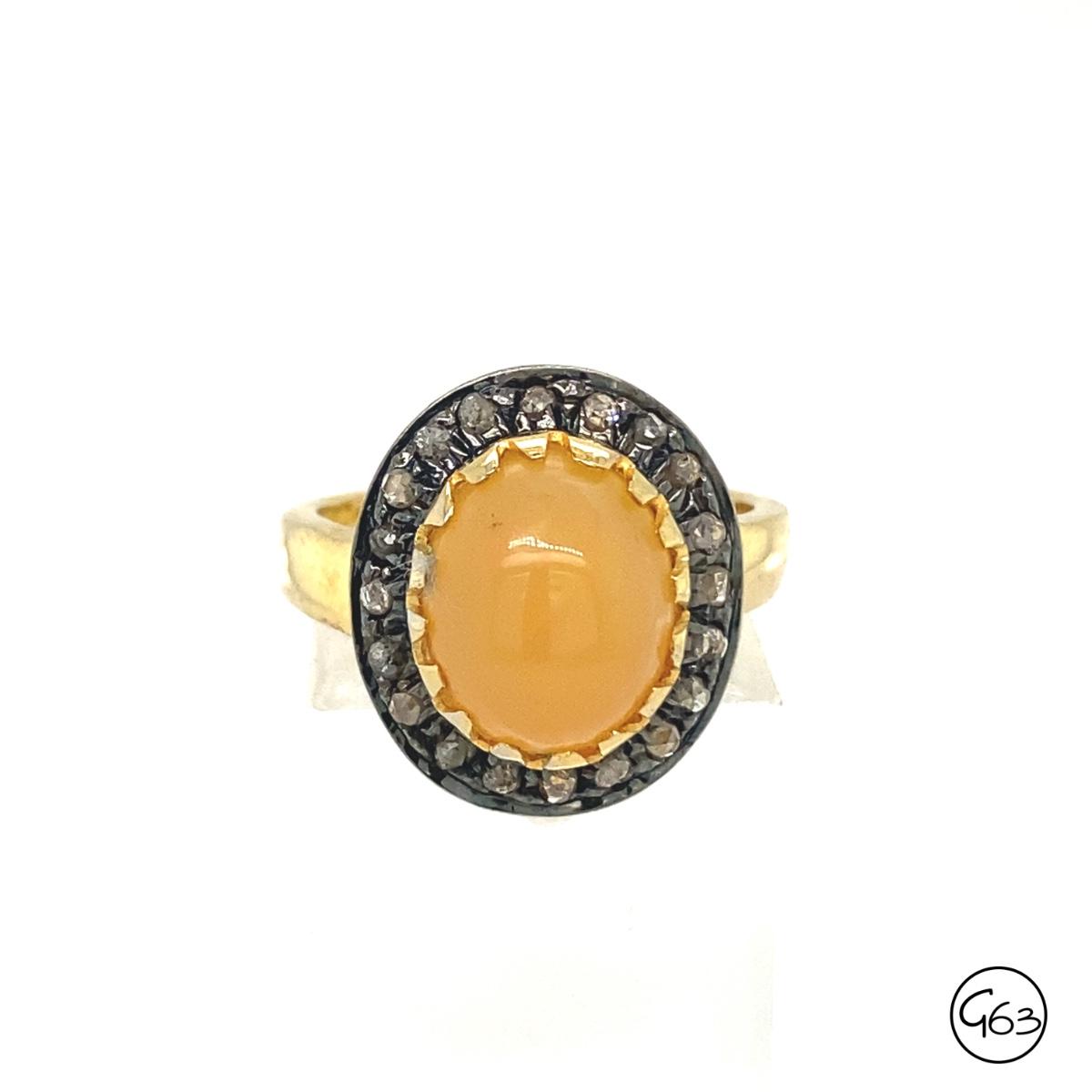 Sterling Gold Tone Opal & Diamond Chips Ring, Size 6.75
