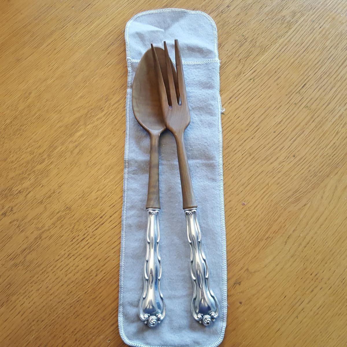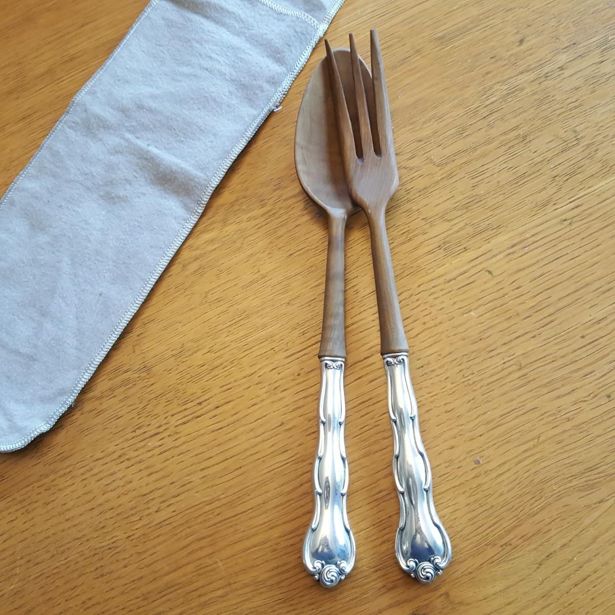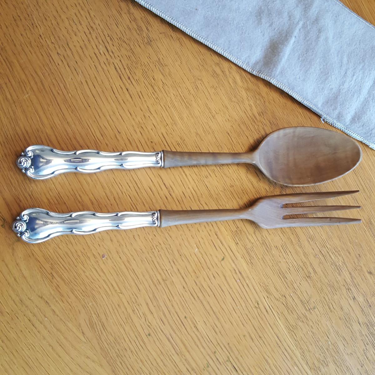 Sterling (?) Handled Salad Serving Fork and Spoon Set