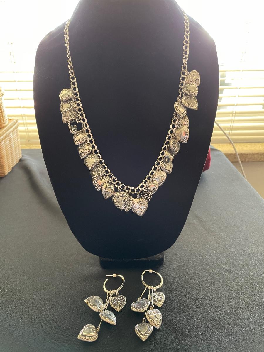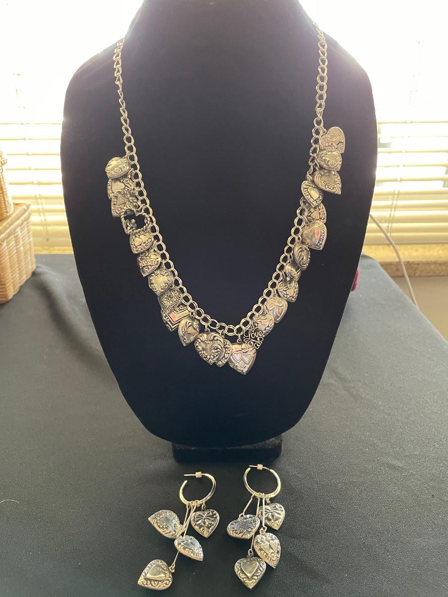 STERLING SILVER HEART NECKLACE WITH EARRINGS