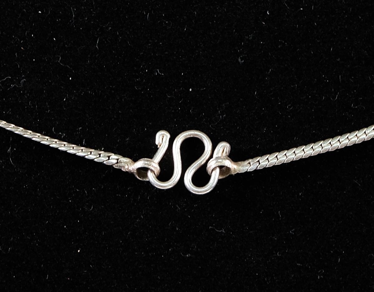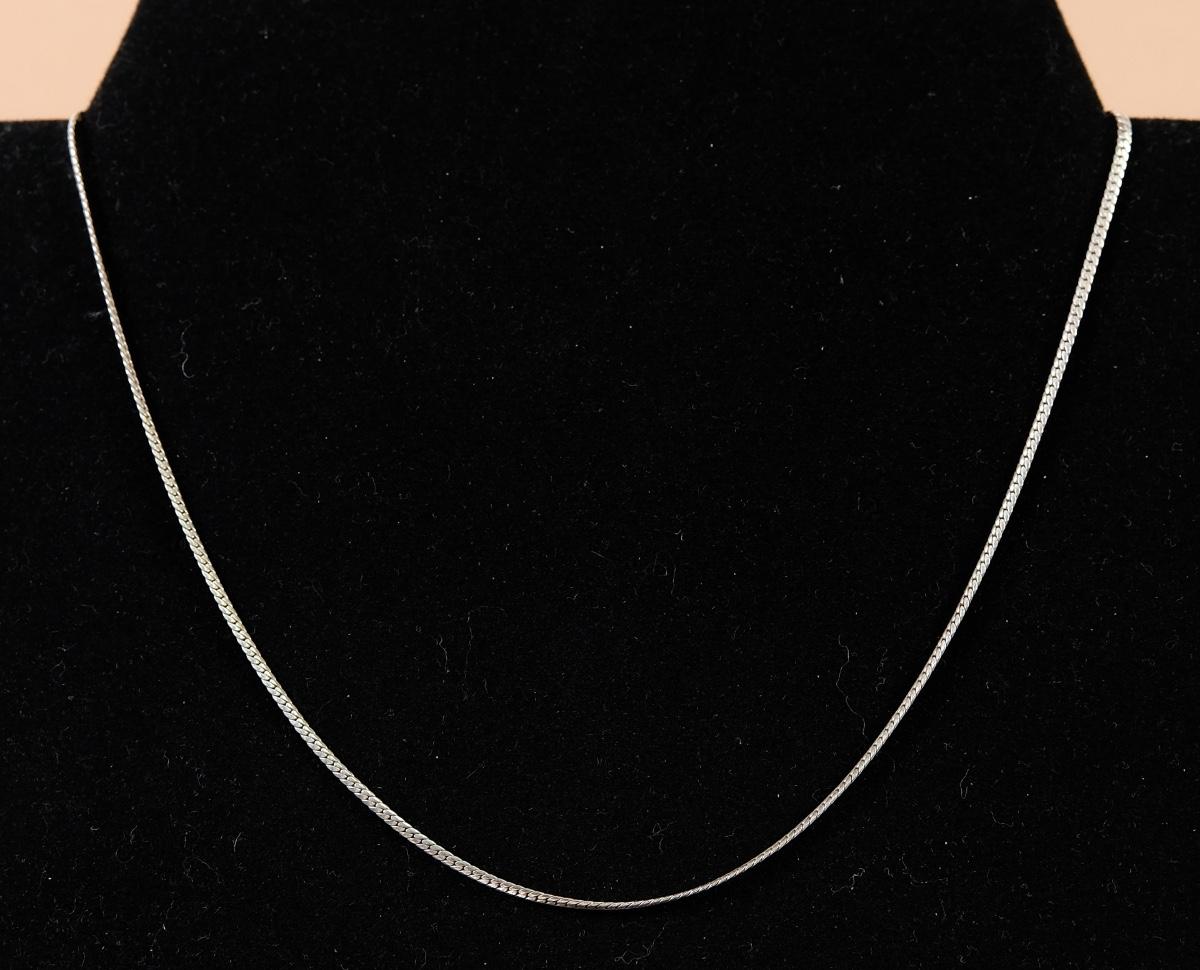 Sterling herringbone chain necklace. Apparently unmarked. Measures approx. 16.5" with a 1.57 mm width. Weighs approx. 3.9 grams.