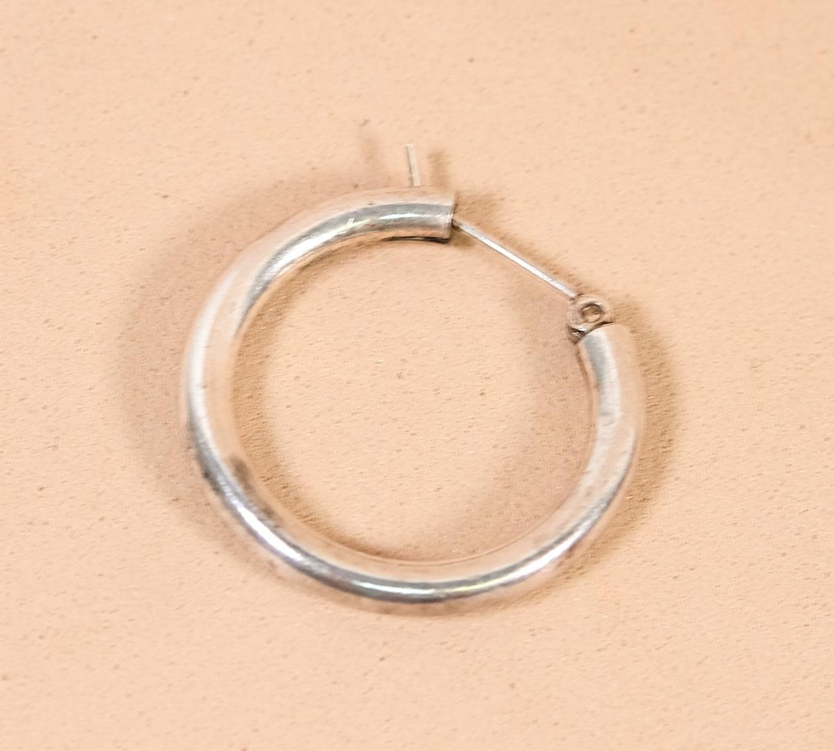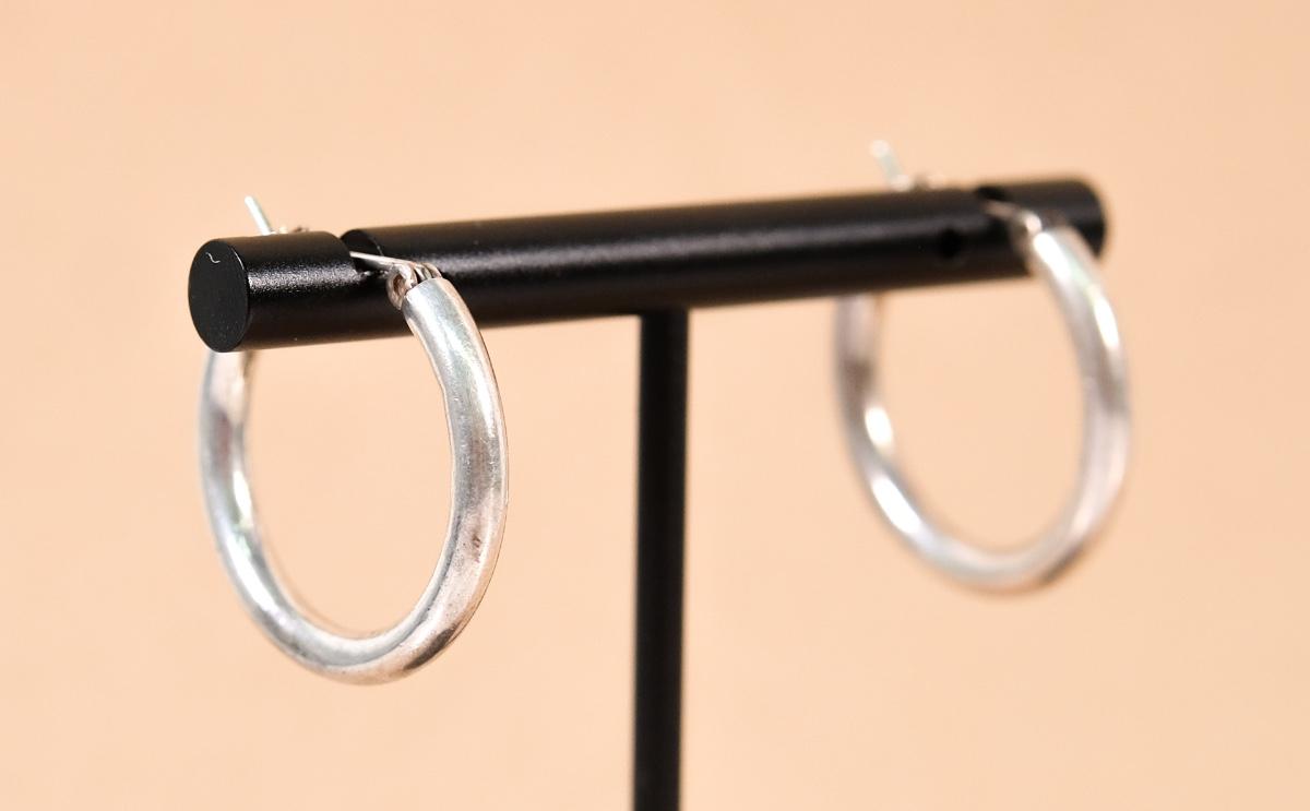 Sterling hoop earrings. Apparently unmarked. Measures approx. 1". Weighs approx. 3 grams.