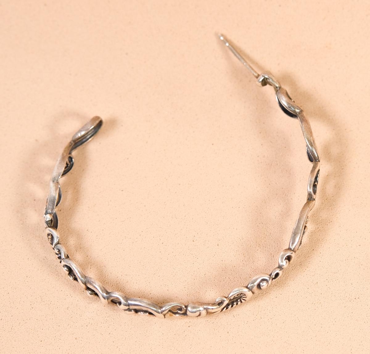 Sterling hoop post earrings. Stamped 925 on post. Measures approx. 2.25". Weighs approx. 8.9grams. Note: slightly misshapen.