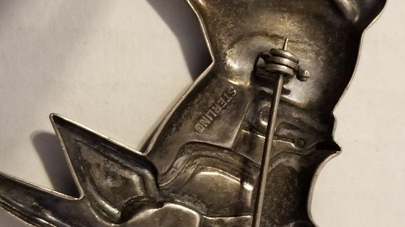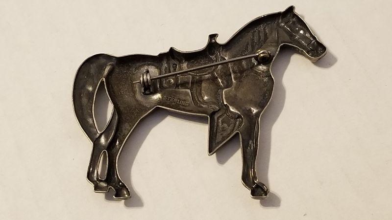 Detailed large sterling horse pin brooch. Marked sterling. Add $8 for insured shipping.