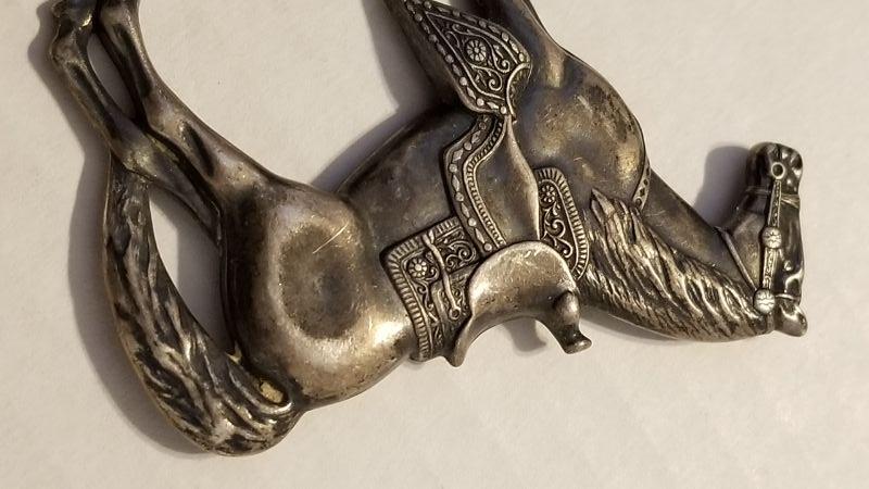 Detailed large sterling horse pin brooch. Marked sterling. Add $8 for insured shipping.